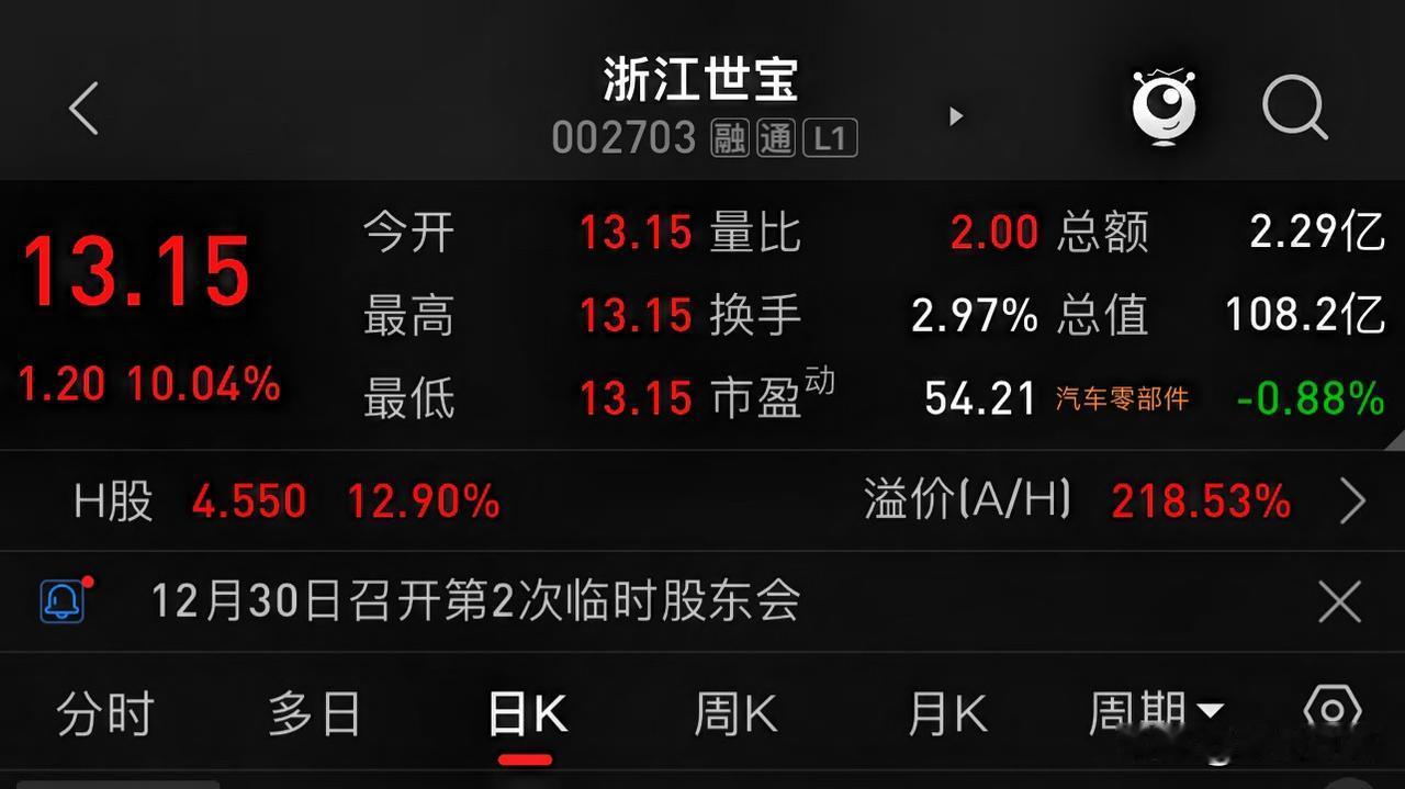 天老爷饿不死瞎家鸟,总会有惊喜呀。 昨天提到安妮股份,因大佬游资加入, 免不了一阵调整动荡, 今天果不其然, 三番五次跌停, 近尾声时终于以11.7元封跌停板。 一切都在意料之中, 这轮洗盘我扛到底, 看他大佬如何操作, 全当积累经验了。 不过人生何处不逢春, 当按住心跳承受大刀阔斧洗盘时, 想不到浙江世宝给了我惊喜, 居然比我预期早早来个涨停板, 真是东方𣎴亮西方亮。 哈哈哈,期待每一天的美好! 声明:股市飞扬炒股日志, 不构成任何推荐建议, 投资有风险,切勿跟风。