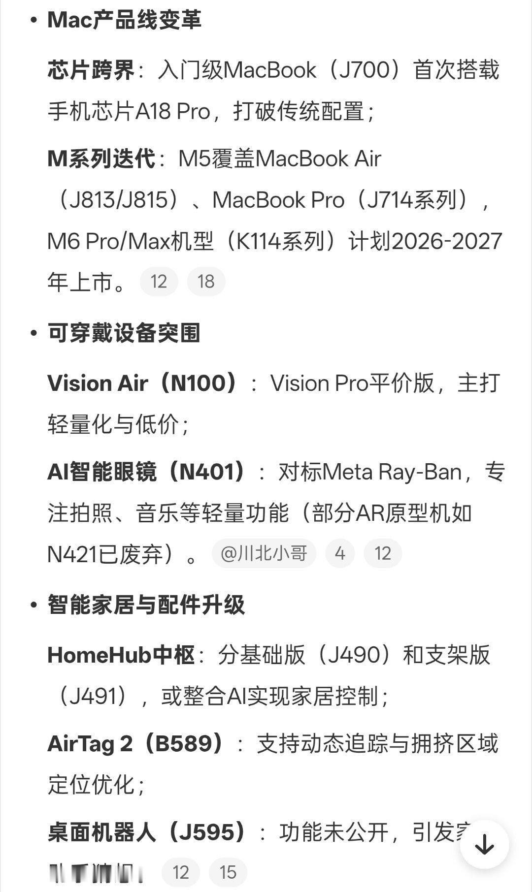 苹果数十款新品遭泄密看似是好几十款新品泄露,实际上大部分产品都是常规更新。只有AI眼镜和桌面机器人算是新产品,当然也有可能早就有爆料了,只是没听过。老张聊科技