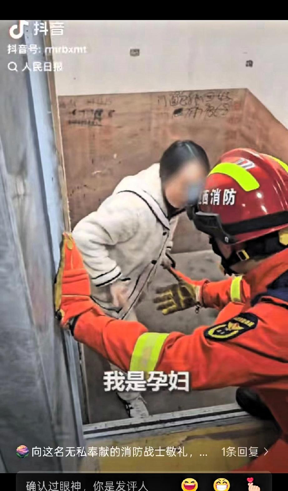上人民日报了!江西萍乡,女子被困电梯,消防员想拉她上来。发现轿厢和地面有段高度差,直接拉人怕不安全。正商量着怎么更稳妥,女子轻声说了句“我是孕妇”。 旁边一位消防员听完,没多说话,先小心地跳进轿厢,然后慢慢跪趴下来 女子连忙推辞,说“不要,不用这样”。消防员只是摆摆手,他保持着跪趴的姿势,没丝毫挪动,直到女子在其他人的搀扶下,轻轻踩着他的背走了出来,他才慢慢起身,拍了拍衣服上的灰。 整个过程很自然,消防员没觉得自己做了多特别的事,事后也没多说什么,收拾好工具就继续忙别的了。但就是这个简单的动作,让人看得心里发暖。 网友说中国消防员是唯一没被吐槽过的职业,其实不是没道理。他们平时冲在火场、救危扶困,关键时刻为了保护群众,哪怕是当一次“台阶”,也心甘情愿。他们也是普通人,是别人的孩子、爱人,但穿上那身制服,就把“护着老百姓”当成了该做的事。 这种温暖从不是刻意表现,而是融入日常的习惯——不用豪言壮语,只要群众需要,能帮上忙的事,他们从不推辞。