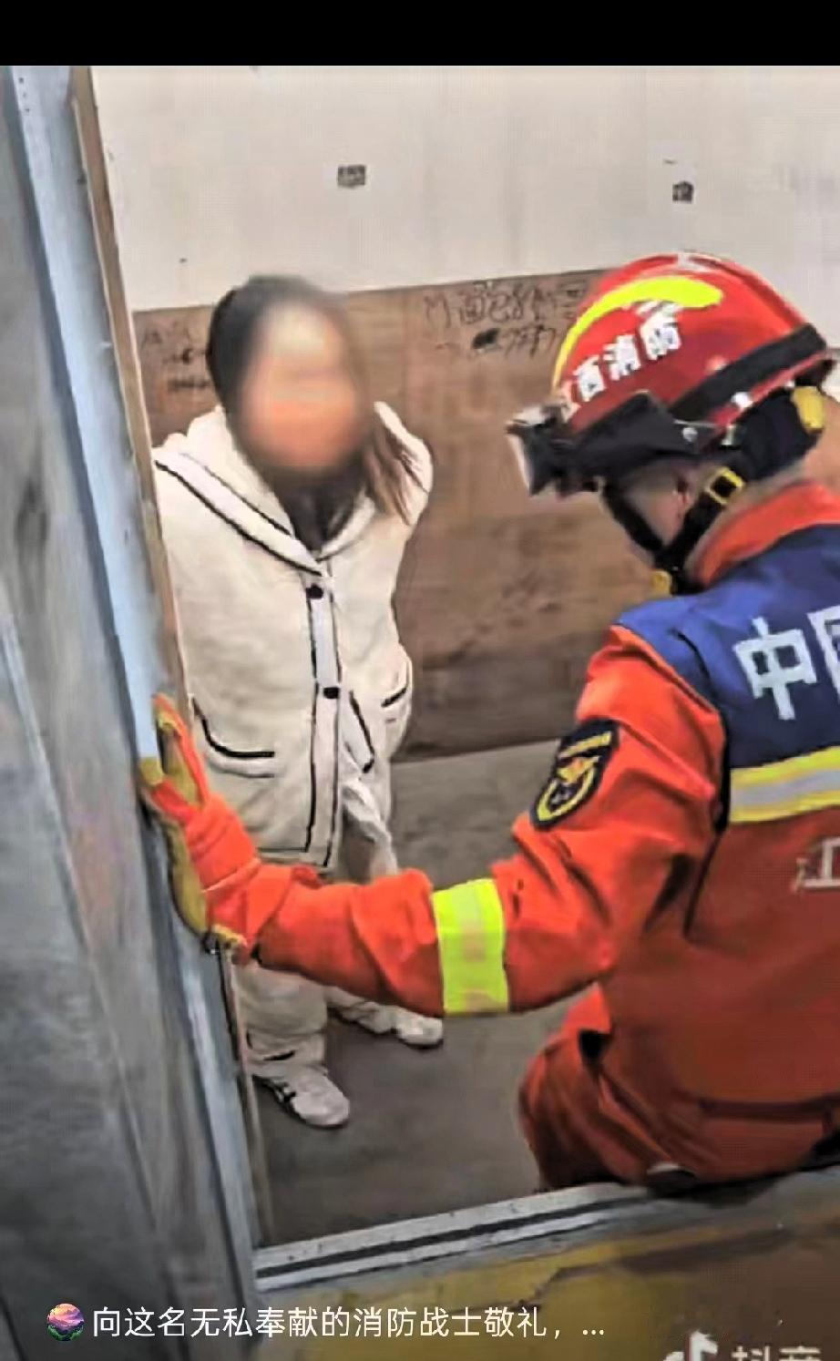 上人民日报了!江西萍乡,女子被困电梯,消防员想拉她上来。发现轿厢和地面有段高度差