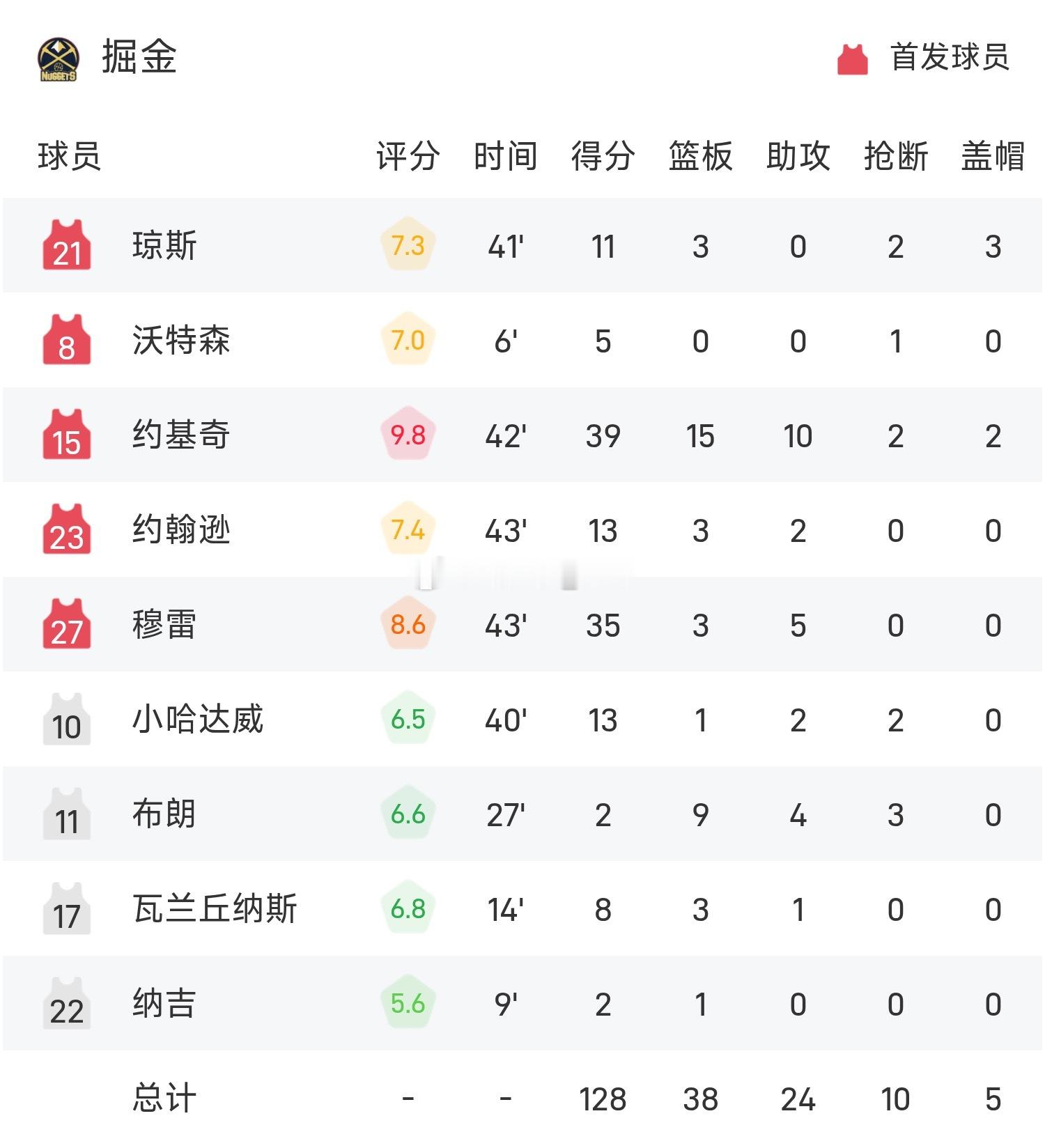 掘金加时战胜火箭12月16日 25/26赛季NBA 常规赛,掘金对阵火箭。双方全场战罢,掘金128-125战胜火箭。约基奇砍下全场最高的39分15板10助,率领掘金成功取胜。申京面对约基奇也是拿下三双,但最后时刻绝平三分不中,掘金主场涉险过关