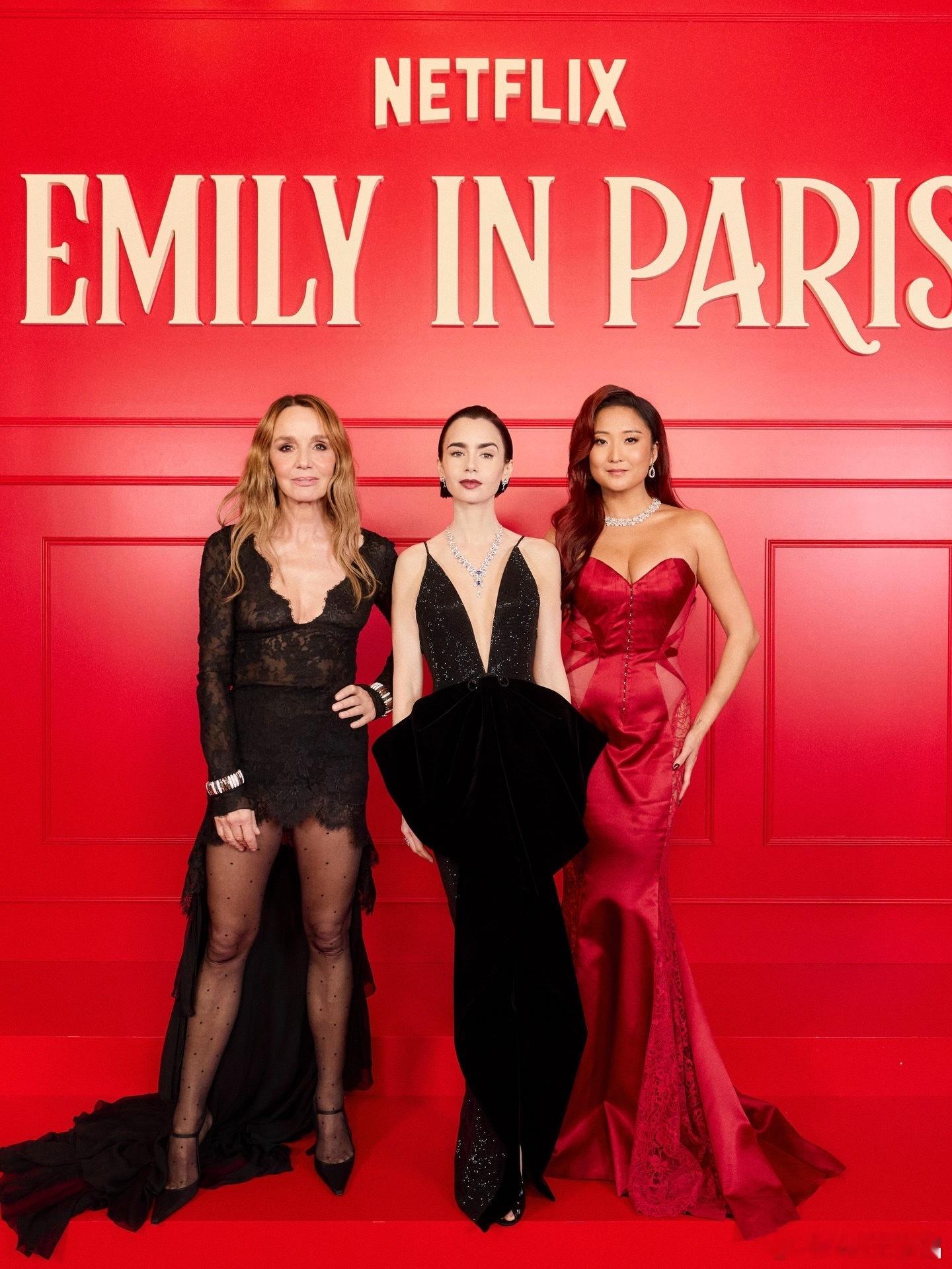 《艾米丽在巴黎》第五季将上线,三位主演Lily Collins、Philippine Leroy-Beaulieu和Ashley Park 亮相首映礼,Lily Collins穿的晚礼服、珠宝首饰和妆发造型都太美了!!时尚灵感解读