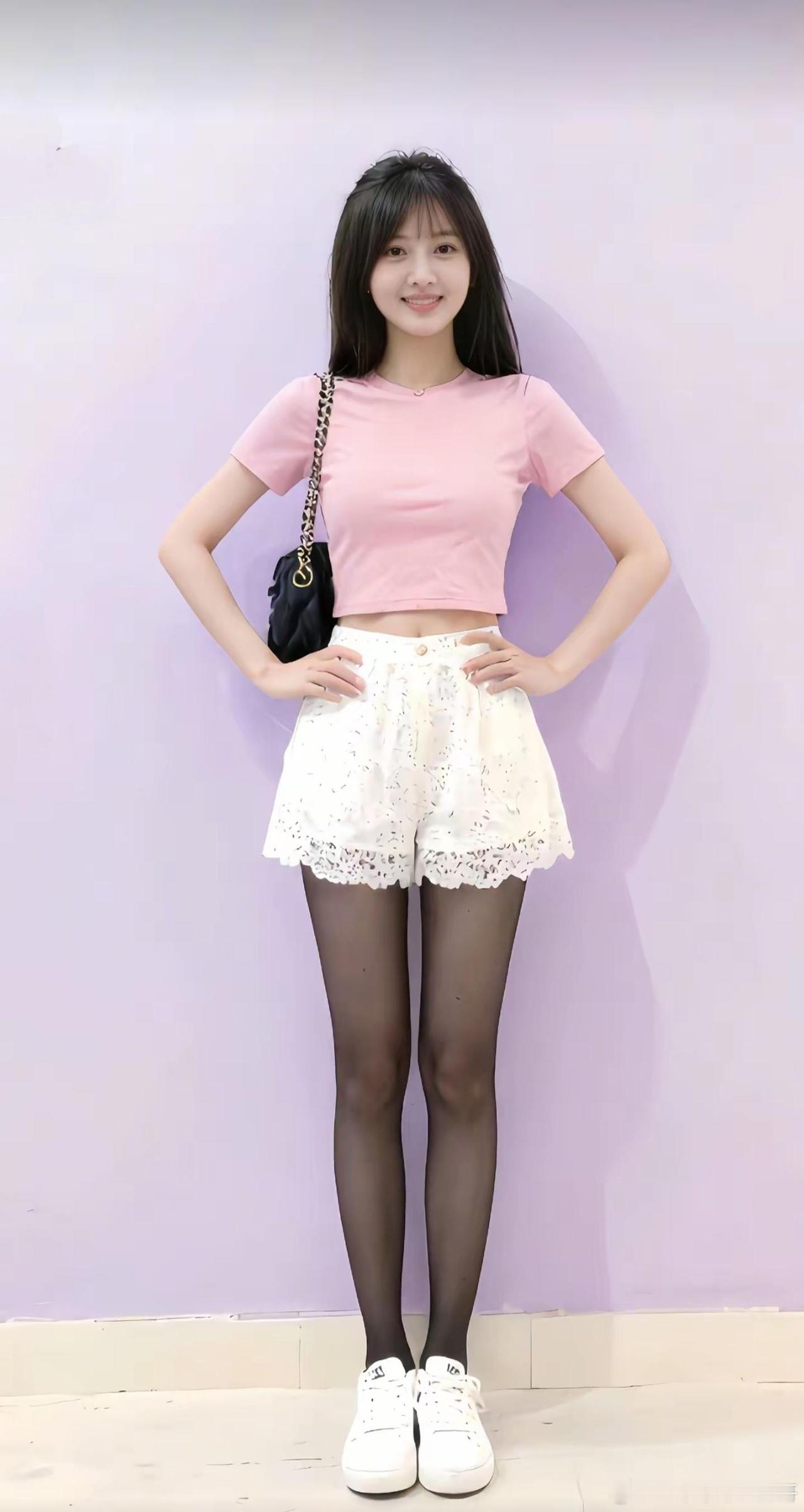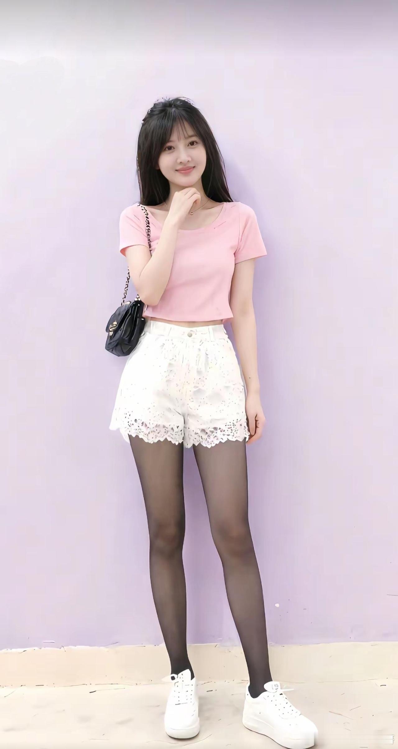 粉色上衣小白裙黑丝小白鞋,青春活力满满,穿搭分享,共享美人靓照 少女小甜鞋穿搭分