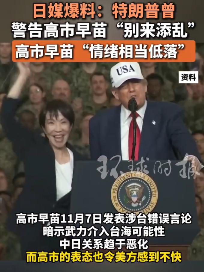 日本《北海道新闻》12月14日报道,在与高市早苗电话谈及中美以及中日关系时,美国总统特朗普警告高市早苗“别来添乱”,因为中美正在努力把事情处理好,这让高市十分沮丧。 这一事件的发生并非偶然,而是近期中美日三方关系动态变化的集中体现,今年10月中美元首会晤后,特朗普政府将与中国达成贸易协议列为优先事项,希望维持中美关系的稳定氛围,这为后续特朗普对高市早苗的警告埋下了伏笔。 而打破这种氛围的直接导火索,是高市早苗11月7日发表的涉台错误言论,她暗示日本可能武力介入台海局势,这番表态不仅严重干涉中国内政,更直接导致中日关系急剧恶化。 对于正着力推进中美合作的特朗普而言,高市早苗的激进言论显然与美方的战略节奏相悖,成为了破坏地区稳定的潜在风险,这让美方感到明显不快。 11月25日,特朗普主动发起与高市早苗的电话会谈,这场时长25分钟的通话中,特朗普以严厉语气直接警告“(中美)正努力把事情处理好,别来添乱”,这番直白的表态超出了高市早苗的预期,也让她在通话后“情绪相当低落”。 高市早苗事后在面对记者提问时,只敢强调与特朗普确认了日美合作关系,却对台湾问题及警告内容避而不谈,仅以“外交事项不便透露”搪塞,这种回避态度进一步印证了通话内容的敏感性与真实性。 特朗普的警告背后,是美国实用主义外交逻辑的体现,一方面,美国需要维持与日本的同盟关系,白宫新闻秘书后续也表态称“日本是美国的重要盟友”。 但另一方面,美国更不愿因日本的激进行为破坏中美关系的缓和势头,毕竟与中国的贸易合作等议题更符合美国当下的核心利益。 这种矛盾在后续的日美互动中持续显现,12月12日日本防卫大臣小泉进次郎与美国国防部长通话时,试图炒作所谓“中国军机雷达照射”事件,而美方公布的通话内容中刻意回避了这一话题,仅提及“就中国军事活动进行磋商”,显然是在刻意避免刺激中方,与特朗普此前的警告形成了呼应。 高市早苗在遭到美国警告后,不仅情绪受挫,其外交策略也陷入困境,日本政府开始警惕中美关系接近,转而试图拉拢北约及意大利等西方国家,小泉进次郎接连与北约秘书长、意大利国防部长通话提及相关议题,但收效甚微,并未获得实质性支持。 中方对这一系列事件的态度十分明确,外交部发言人郭嘉昆已指出日方“制造紧张、碰瓷炒作”的真实目的,要求其撤回错误言论,这一立场也成为影响美方态度的重要因素。 从本质上看,特朗普的警告暴露了美日同盟的内在矛盾——日本试图借助美国力量遏制中国,而美国则更看重自身利益,不愿被日本拖入冲突。 高市早苗的沮丧,既源于被盟友公开敲打后的颜面受损,也源于其激进外交路线受挫后的战略迷茫。 这场事件也让外界清晰看到,在涉及中国核心利益的问题上,任何试图挑拨离间、制造混乱的行为,不仅会遭到中国的坚决反对,也难以获得国际社会的支持,更会被盟友基于自身利益所约束。