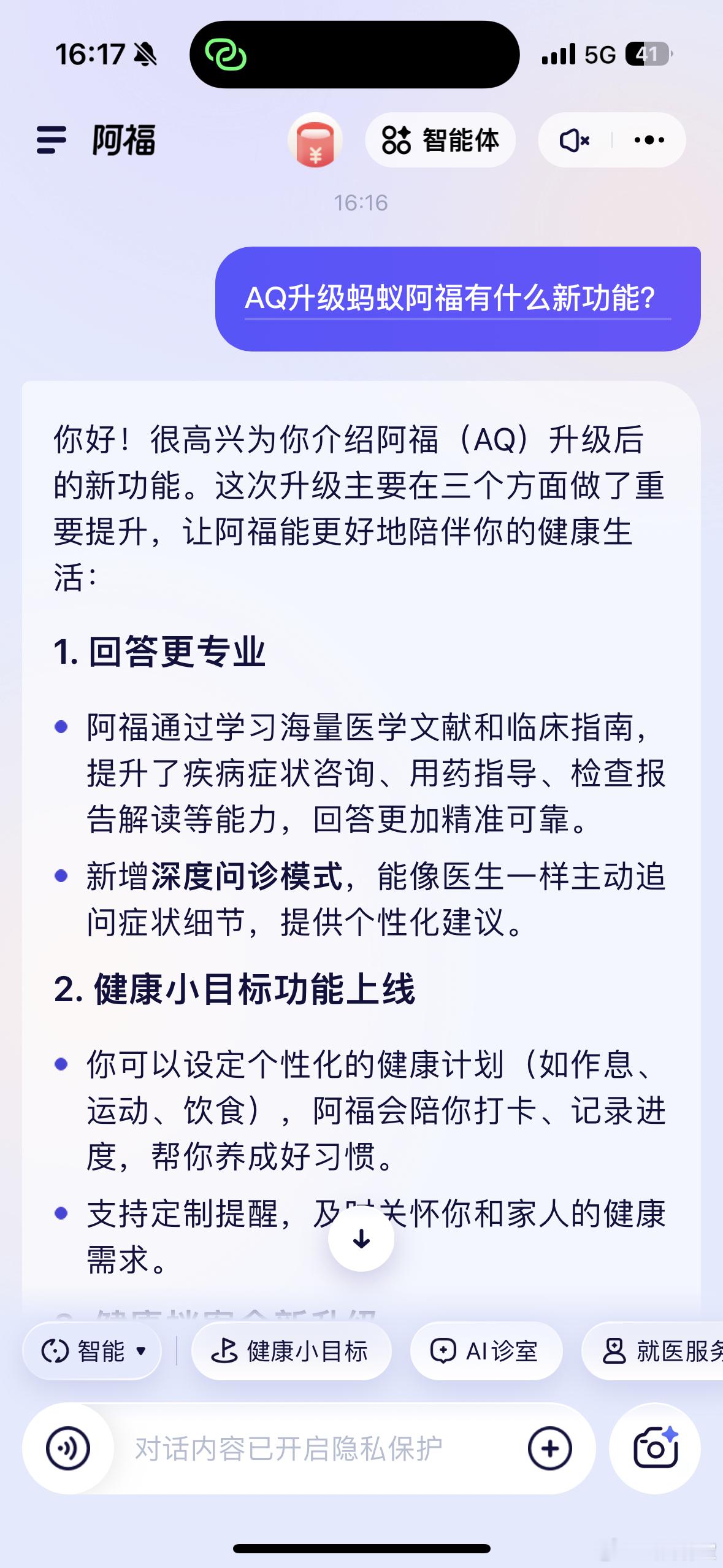 阿福从智能手表里读懂了我的睡眠 平时戴智能手表主要还是为了多看两眼健康数据,但最烦的就是换个手机或者给家里人买个不同牌子的表,数据断档了特别的心累。最近在「蚂蚁阿福」上有了解法。它居然能把Apple Watch、华为这些主流设备的墙都打通,数据直接归拢,像我这种多机党真的是狂喜。里面那个AI医生也有点东西。它能根据你的身体各种指标直接给出改良建议,有异常数据就点那个AI医生分身问一下,而不是现在这些健康App冷冰冰丢一堆图表让我猜。