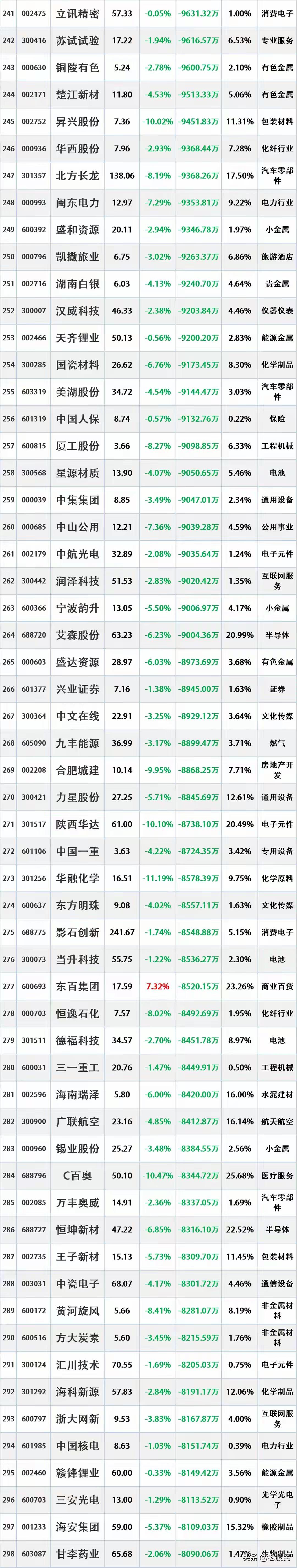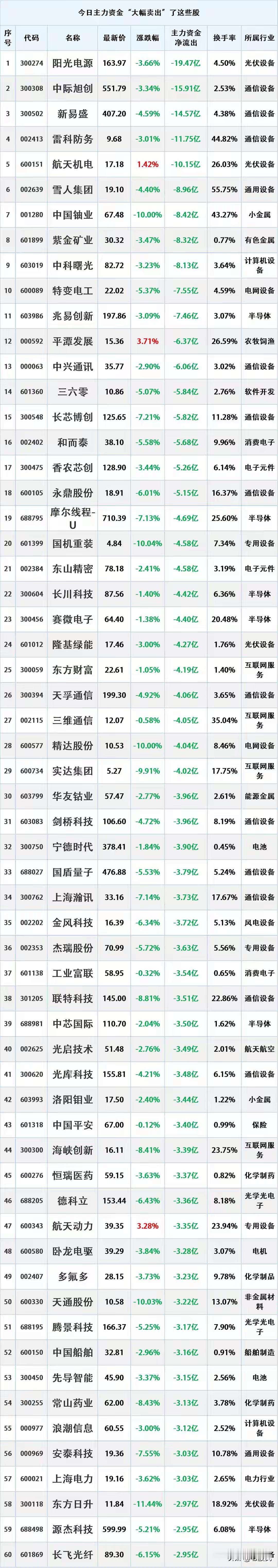 尾盘资金出逃,12月16日主力资金大幅流出的股票名单。 资金流出是指在一定时期内(如一天、一周等),主动卖出某只股票的资金量大于主动买入该股票的资金量。主动卖出是指投资者以买方的报价直接成交,显示出投资者对该股票的消极持有或抛售意愿。