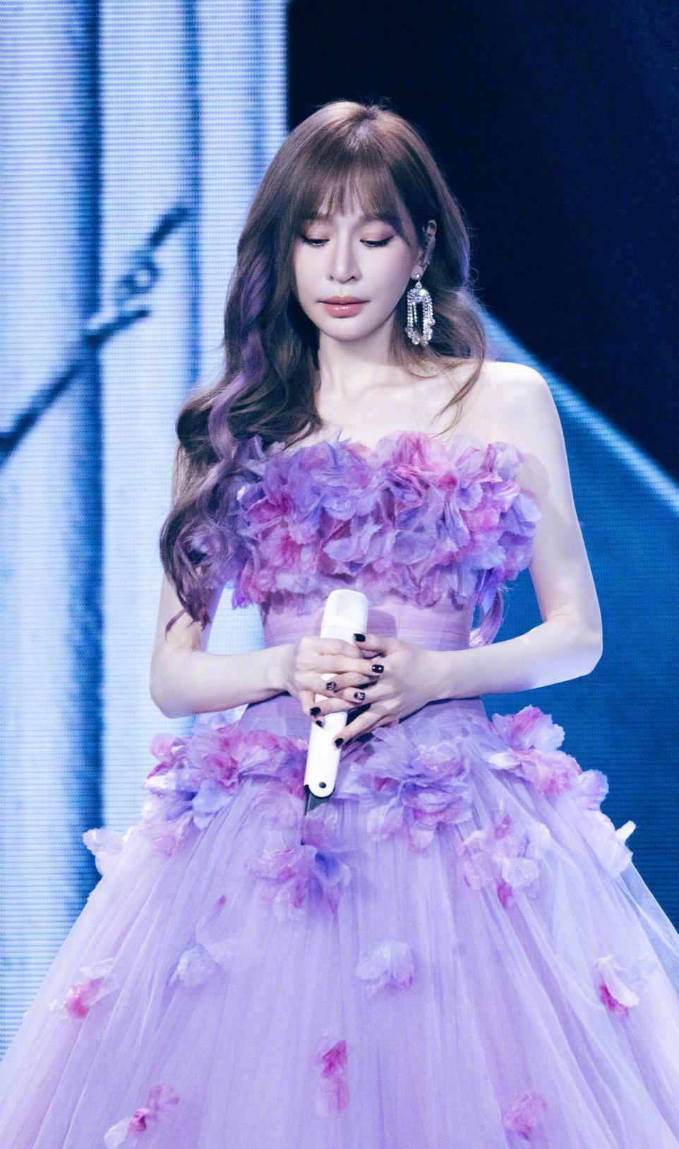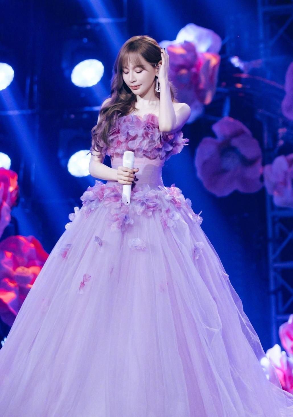 站在30米手工缝制的花瓣雨中唱歌,她让「甜美」成了专业动词。 王心凌最新演唱会中段,灯光骤然切换。 粉紫色光束打下来时,她身上的淡紫色蓬蓬裙开始「生长」—— 超过30米纱质材料缝成的花瓣,随着《爱你》重新编曲的节奏微微颤动。 那不是造型,那是舞台装置。 设计师把花园穿在她身上。 抹胸裙摆的每片花瓣都在呼吸,蓬松卷发扫过镶钻耳坠的瞬间,舞台变成昼夜交替的花圃。 她握白色话筒的手指关节发白,声音却像裹了蜜的刀锋,切开所有关于「甜心教主」的刻板印象。 你看懂了:甜美不是形容词,是动词。 是38岁依然能用一首歌把你按回2005年课桌前的执行力,是敢在万人场馆中央把自己开成一朵精密机械花的掌控力。 当《睫毛弯弯》前奏响起,花瓣与灯光同时坠落。 你突然发现:真正经典的从来不怕重新编曲,真正动人的永远敢于当场盛开。