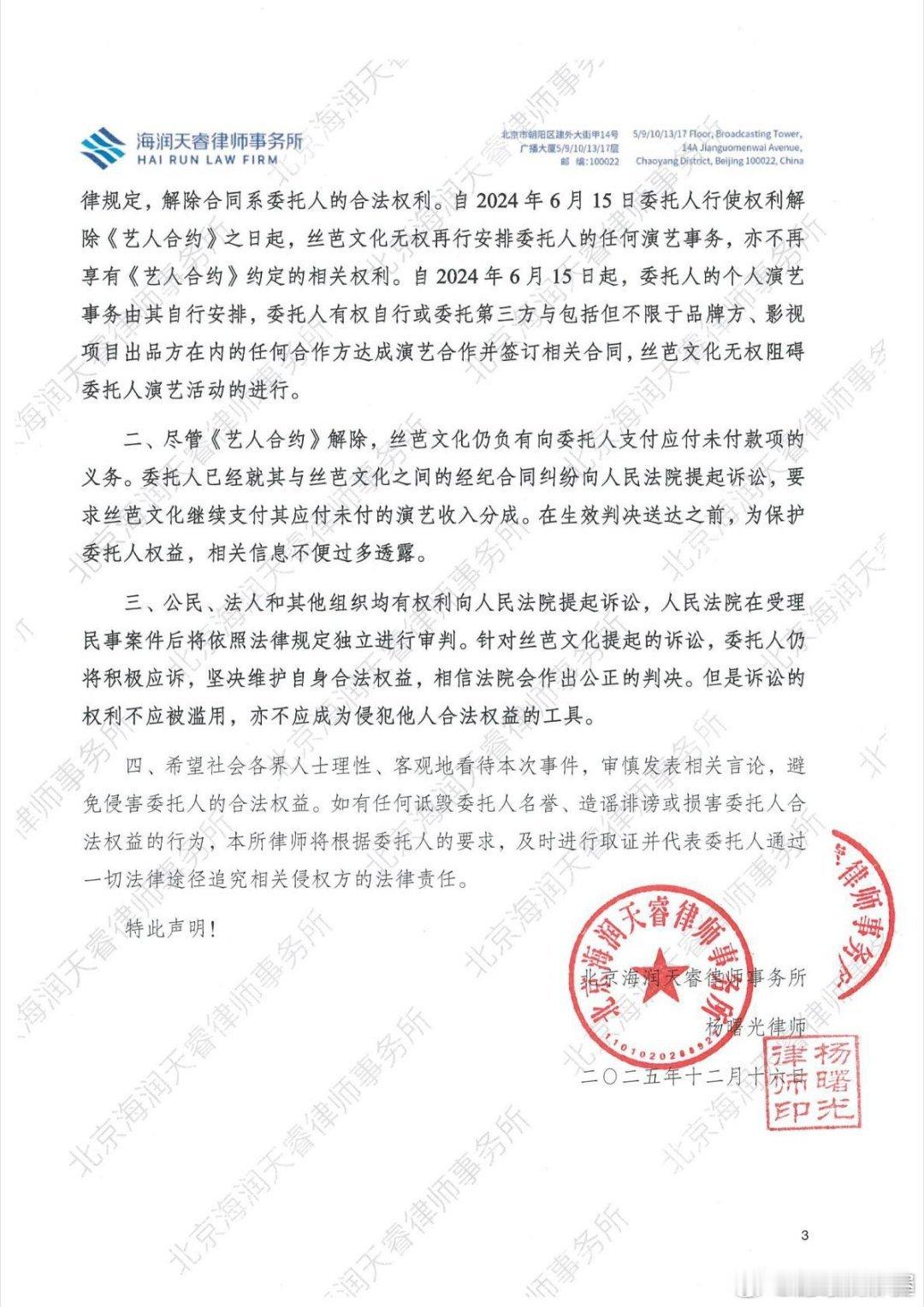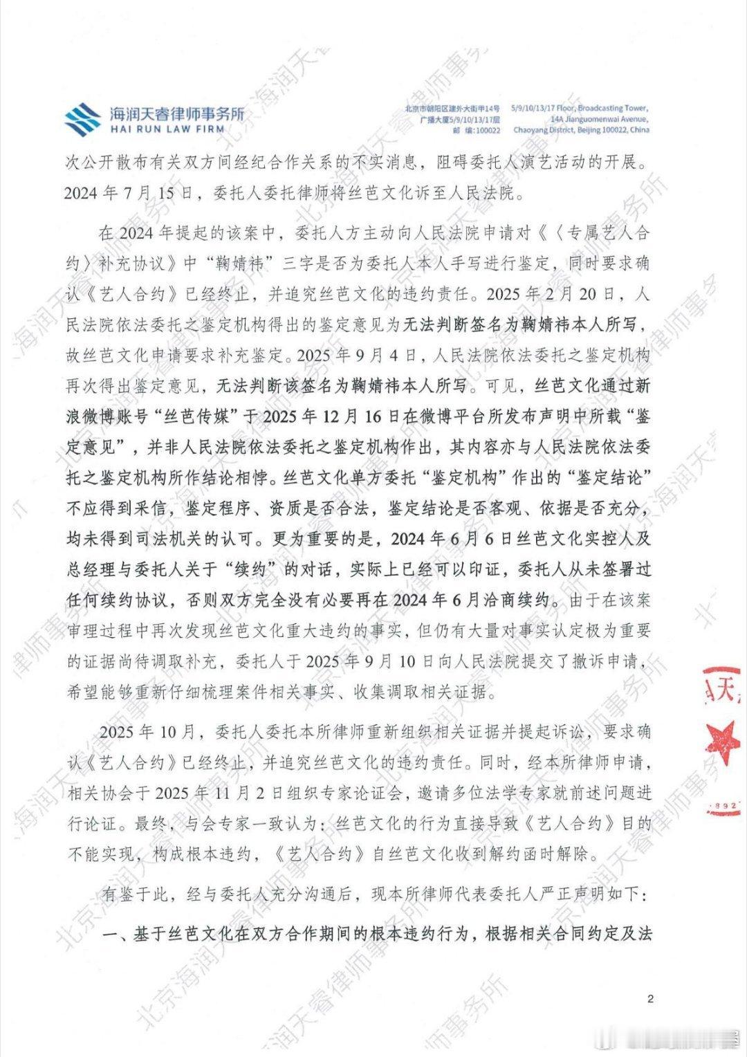 这份委托声明回应得这么快像是早有准备,感觉鞠婧祎早就预料到丝芭会来这一出只能说鞠姐牛,10年早就看清了公司的真面目,她后面的每一步都走得小心且稳定丝芭回应鞠婧祎