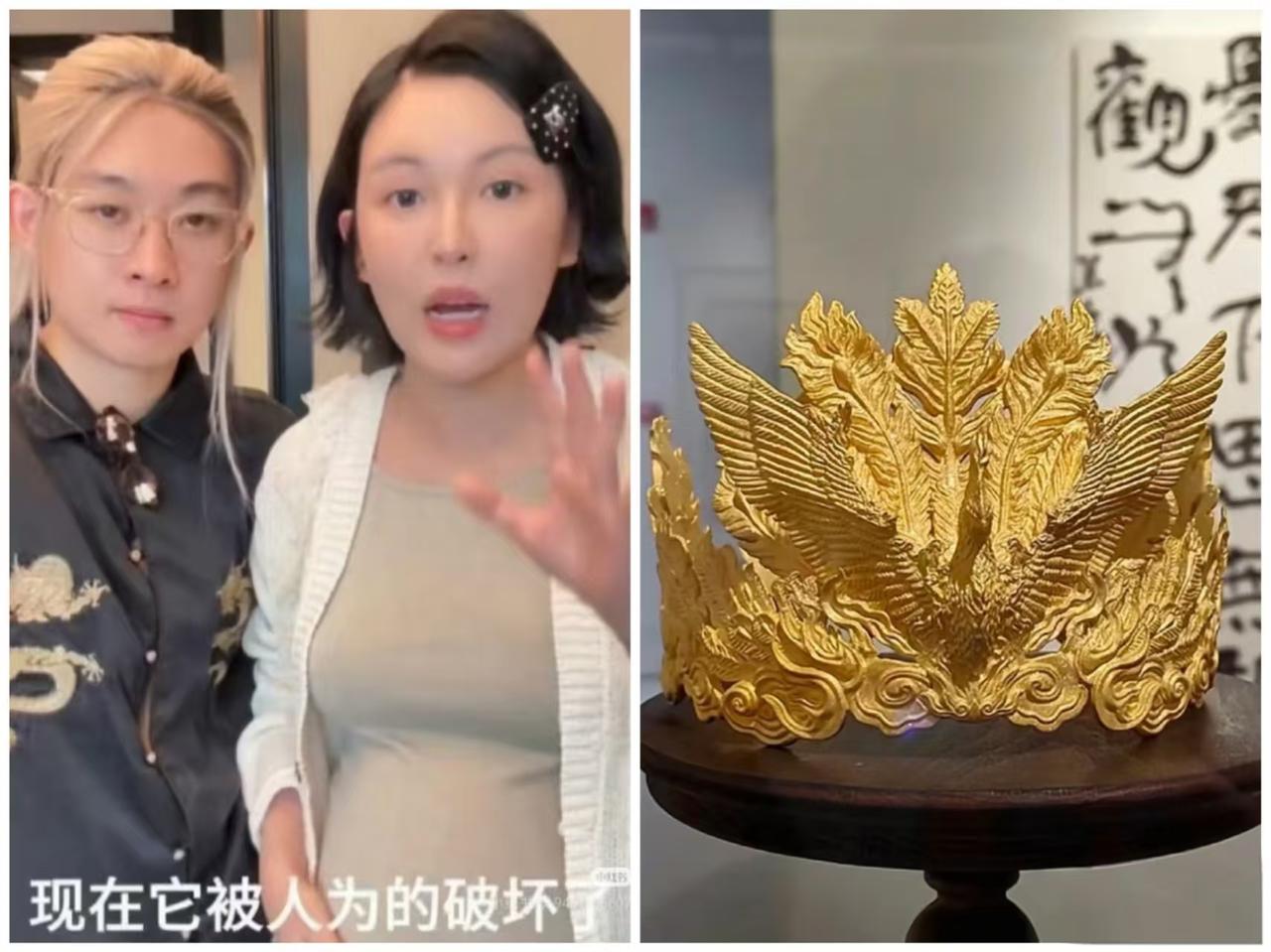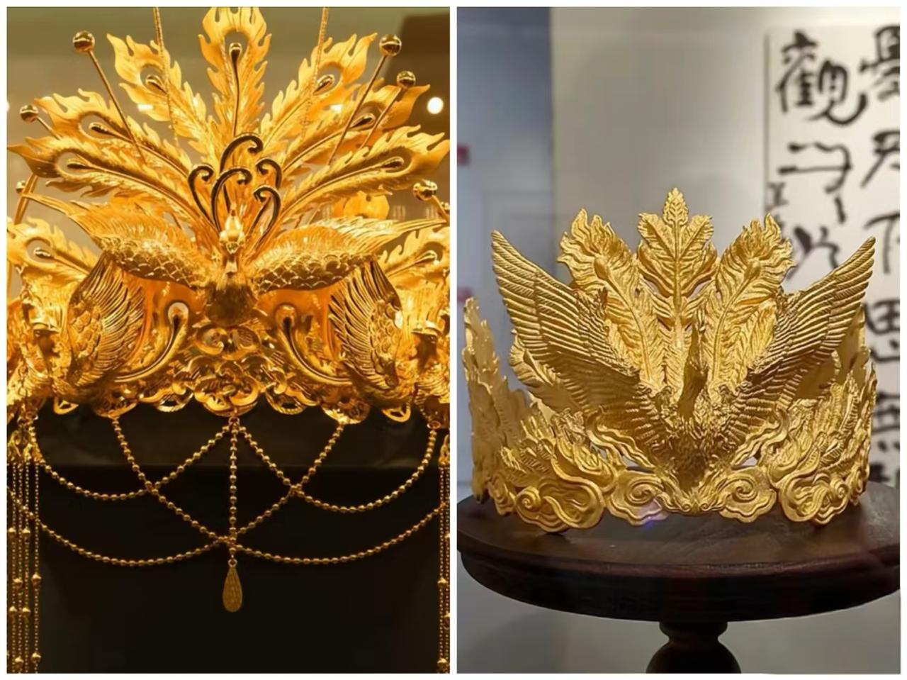 没有对比就没有伤害, “四斤黄金凤冠”最强打脸来了! 当霸王茶姬总裁VS千万粉丝网红,情况就变得有意思了很多。 张凯毅夫妻一直强调他们的黄金凤冠有多珍贵多值钱,单单手工费都要20多万,直到我们看到霸王茶姬总裁婚礼,他妻子头顶上戴的,才明白什么是真正意义上的凤冠! 不论是从成色还是工艺上,网红张凯毅那顶,逊色了不止一点点。尤其是把两张图放在一起对比,相信大家心底都有了答案。