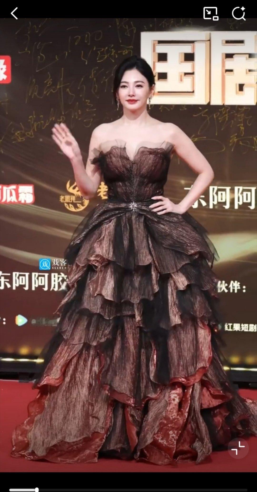 胡杏儿这是健身过度了吧,12月16日亮相国剧盛典红毯,一身挂脖露脸长裙,真的将身