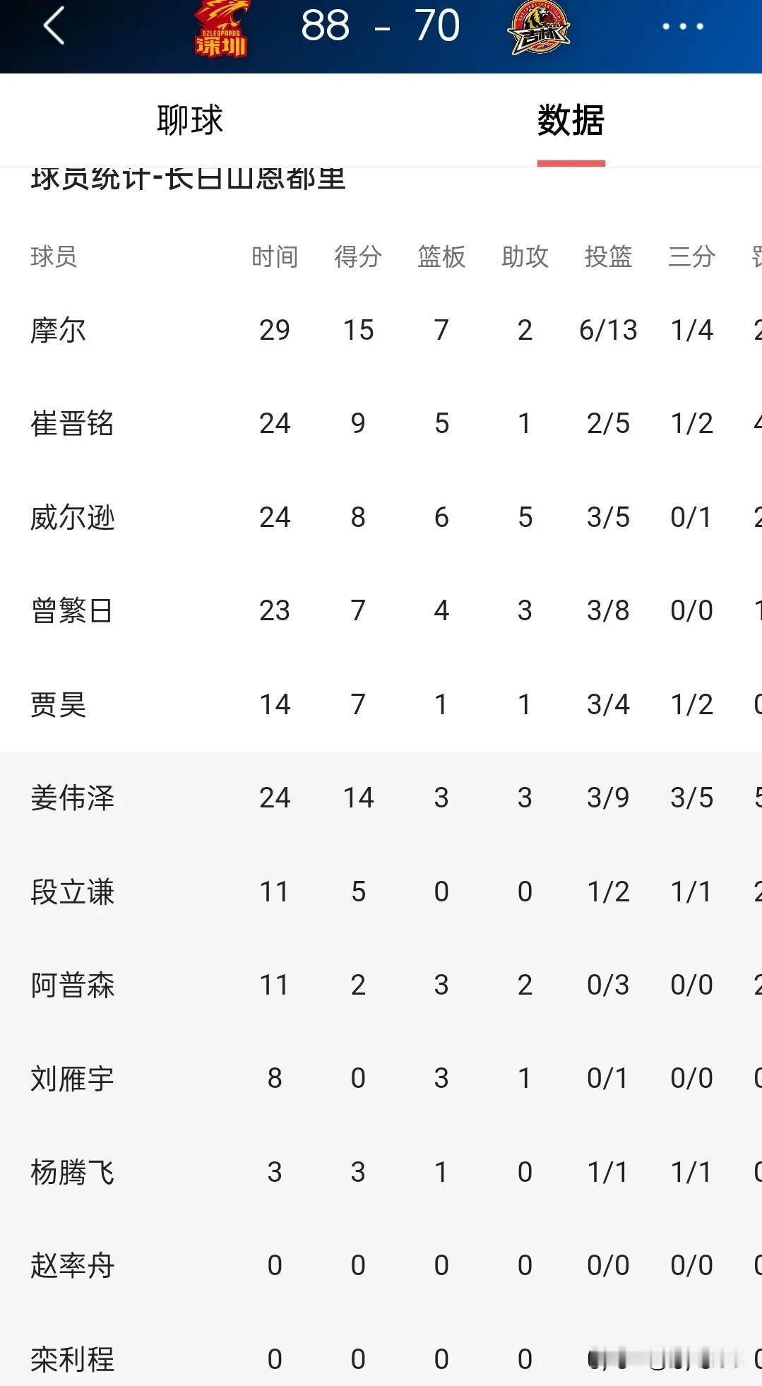 吉林男篮最大的短板还是钟诚,栾利程和赵率周到底怎么了,一分钟都不让打,栾利程此前一直都是首发的,落后10多分,这个时候不得上赵率舟投三分球吗。 姜伟泽第一节不打是啥意思,崔晋铭在场上的作用约等于零,崔晋铭上一场一分钟都没打,这场比赛差点就打满全场。球队一丁点儿防守都没有,对手随便投。