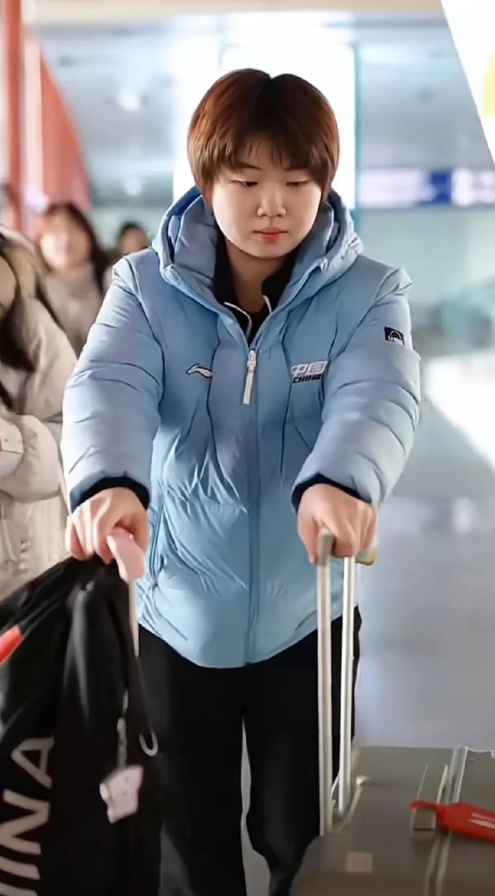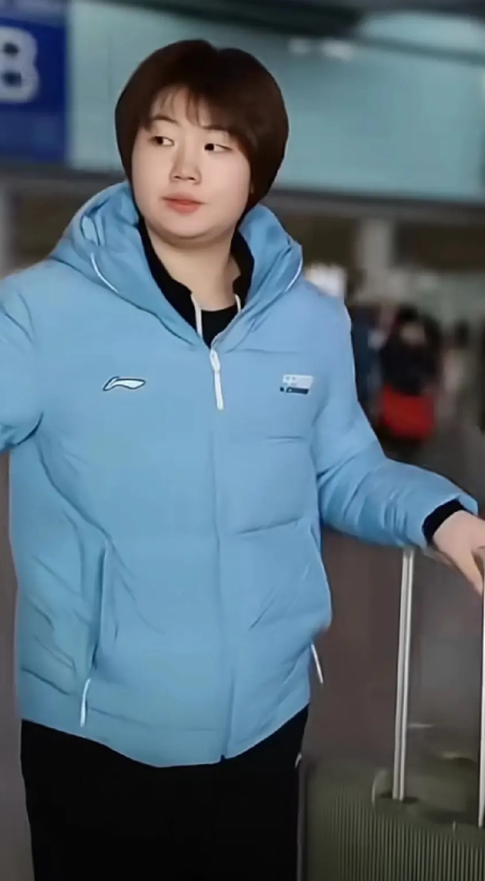 我说她低调,是因为蒯曼来去都穿这件衣服。这件衣服可能是队服,陈熠、徐奕出发那天也穿着同款衣服。可以看出来蒯曼非常的低调,随意。