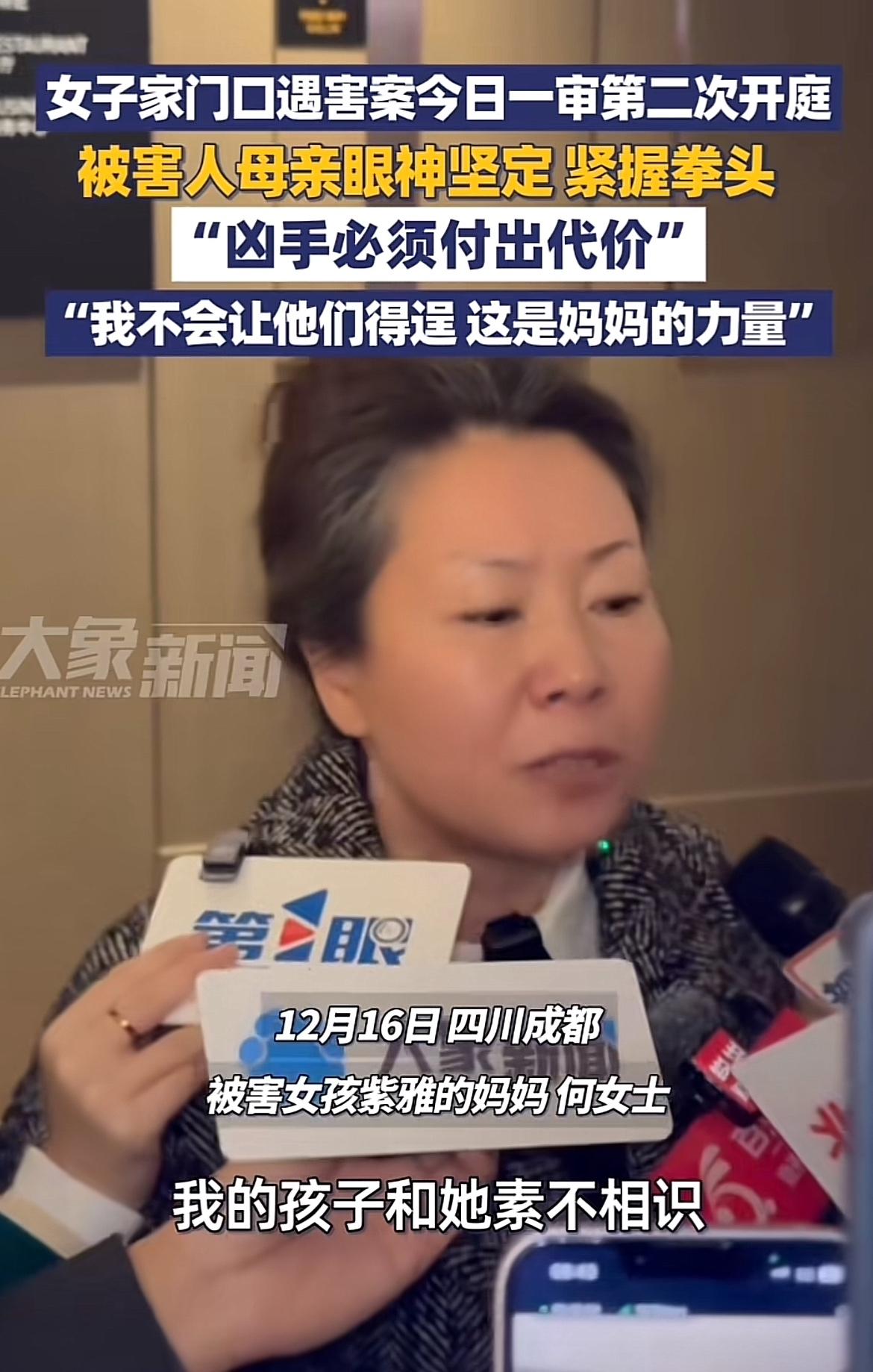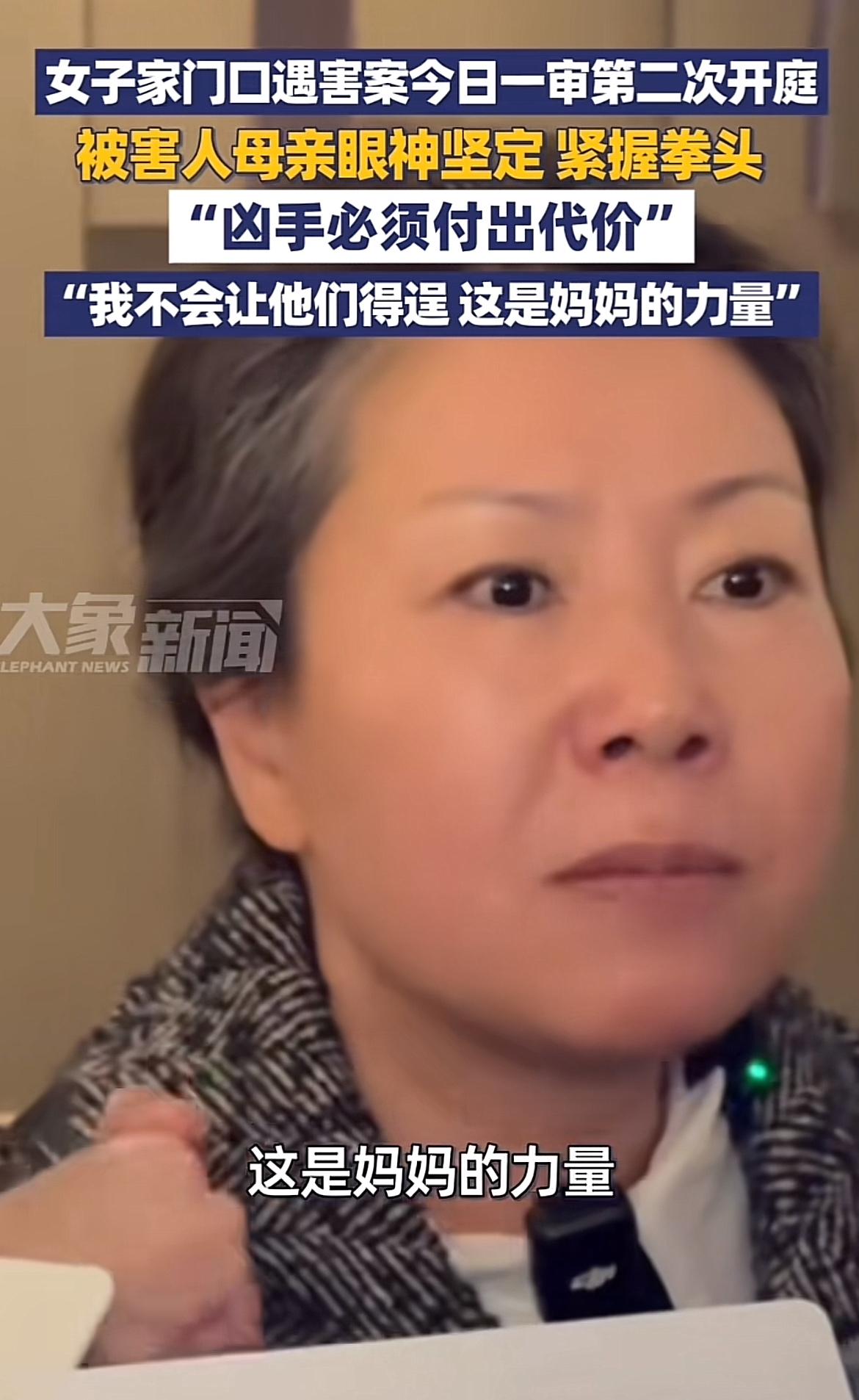 看到这则女子家门口遇害案真的让人痛心又愤怒。受害人母亲那眼神坚定,紧握拳头喊出“凶手必须付出代价”,这是一位母亲对女儿最悲愤的守护。一个鲜活的生命在家门口消逝,背后是家庭的破碎和无尽的痛苦。 这样的恶性案件必须得到公正的处理,凶手理应受到法律最严厉的制裁。每一个生命都值得被尊重和保护,不能让罪恶逍遥法外。希望相关部门能尽快彻查真相,给受害者及其家属一个交代,让逝者安息,也让社会多一份安宁。