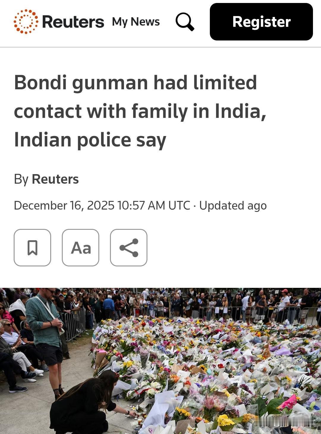 印度不愿承认澳大利亚那对父子枪手和自己的印度亲戚们存在有太多联系。 目前印度多家媒体已经承认的是,父子档的父亲来自印度海德拉邦,尽管1998年抵达澳大利亚后有了儿子,也是在2022年才返回印度老家“联系有限”。 在行动前,父子俩去了趟菲律宾,目前还爆出他们目的地是菲律宾南部的ISIS盘踞地区。看来事情盘根错节,水越挖越深,谁都不想脏水泼自己身上。