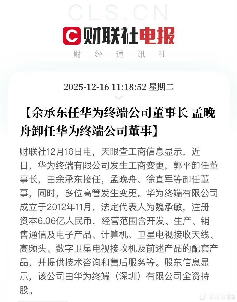 华为人事变动,余承东升任华为终端公司董事长。余承东任华为终端公司董事长