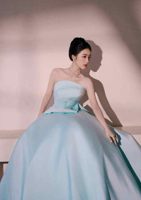恩熙这条薄荷蓝抹胸裙直接把温柔焊在身上了