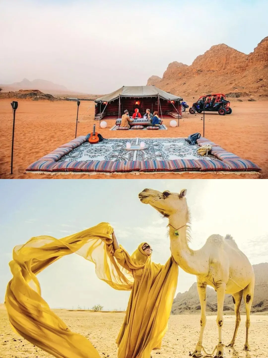深入「Mleiha沙漠」 考古中心,探索史前遗迹。随后体验冲沙、骑骆驼的刺激。日暮时分,在贝都因营地享用星空晚宴,围着篝火畅聊。追求独特体验,不妨入住沙漠中的 「月球营地」 白色帐篷。