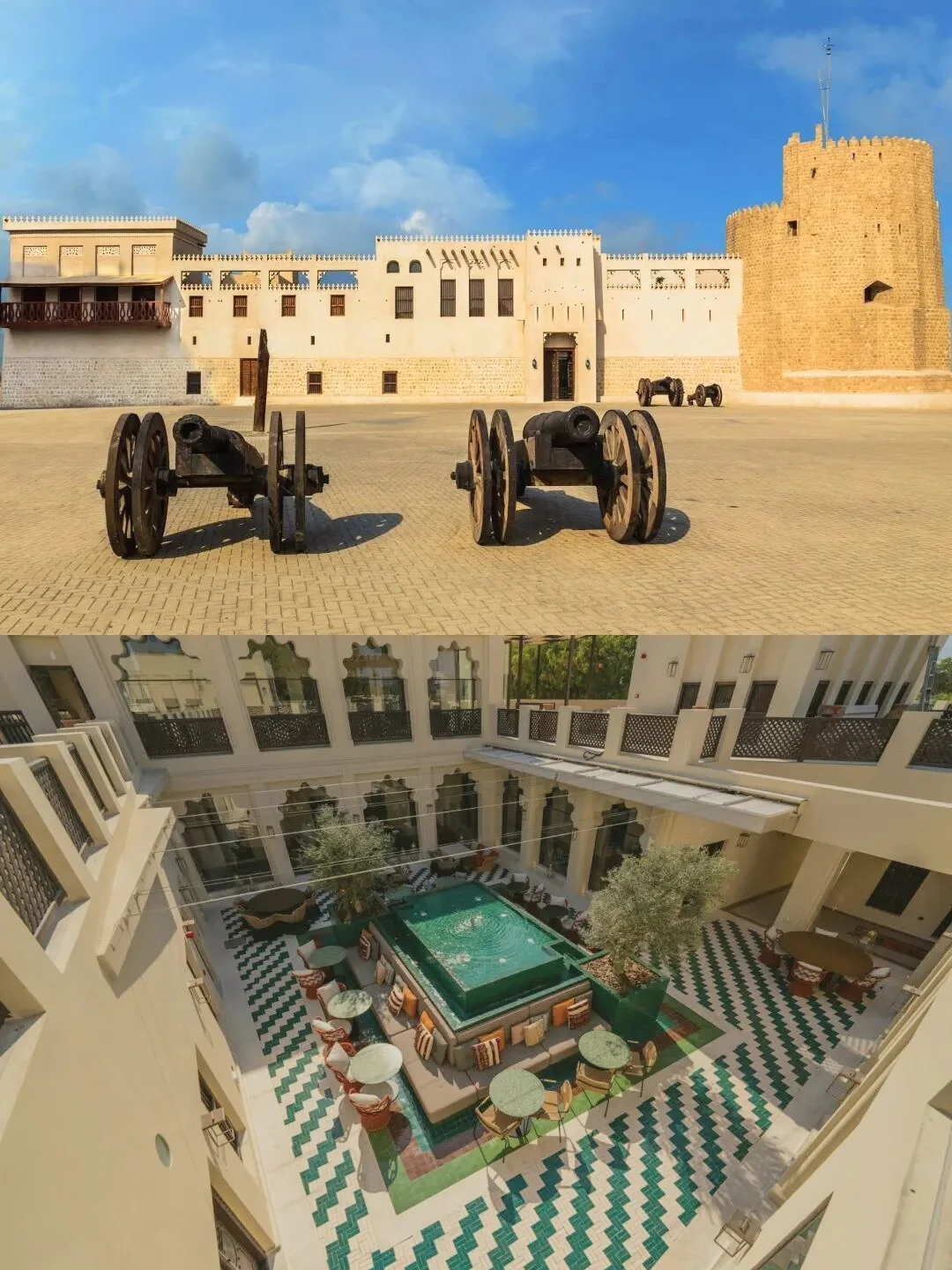 从世界遗产「沙迦之心」 开启时光之旅。在古城巷陌中,参观城堡博物馆与那不达大宅。强烈推荐沉浸式体验:咖啡作画与阿拉伯甜品制作。