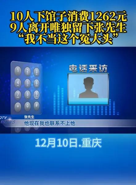 重庆一男子被朋友邀请到饭馆吃饭,吃到半夜12点左右后,朋友纷纷散去,只剩下男子一人在现场,结果服务员要男子买单,男子却表示自己是被邀请来的,不是自己请的客,报警之后,男子依然表示,自己如果买了单,这不是成冤大头了? 重庆的夜,按理说是最适合吃夜宵、喝啤酒的时候,但那天张先生在江湖菜馆里,心里比外头冷得多。 那天是老周发起的饭局,说好久没见,非要请大家出来聚聚,还一再强调“今天我做东”。张先生还特意跟单位请了假,晚上七点不到就赶去了。 一进包间,场面挺讲究:一桌子硬菜,辣子鸡、毛血旺、凉菜全上齐了,啤酒也是一箱一箱往上搬。十来个人,从吃晚饭一直折腾到快午夜,喝得挺尽兴,话题也从工作聊到家庭,气氛热闹得很。 到晚上十一点多,有人开始说要走,老周当着大家的面还拍胸脯:“先走的就走嘛,账我来结。”这话说完,张先生也就没多想,还帮忙送了几个人出去。 结果酒意一过,快十二点的时候,他一抬头发现,包间里就只剩他一个人了。服务员这时候把账单拿了过来:加上中途加的菜和一共24瓶啤酒,一共1262元。 张先生赶紧解释,说自己是被请来的,今天应当是老周买单。 可对店里来说,谁预订的、谁说请客他们管不上,只知道现在桌上的东西都被这帮人吃了喝了,最后只剩张先生在现场,账也只能先找他结。 老板过来也挺直白:开门做生意,菜是有成本的,工钱也要发,不可能白招待一大桌人。张先生觉得自己特别憋屈,明明是去捧个人场,最后却成了唯一被“留下买单”的人。 大家谁也说服不了谁,只能叫了警察。民警来了之后,帮忙给老周打电话,电话是接通了,但态度一下就变了。先是说自己手头紧,付不了钱,然后又顺口一句:“你先垫一下嘛,明天我转给你。”说完就急匆匆挂了。等民警再打,对方干脆不接了,微信也不回。 这种局面,其实不少人都在网上讲过类似遭遇:有人被临时叫去“撑场面”,结果到了才发现,自己是被当成负责买单的“冤种”;还有人被丢在KTV,一个人面对好几千块的账单。 从感情上讲,这种行为挺缺德,把朋友当提款机。但从法律关系上看,事情又没那么“讲哥们义气”。按法律上的理解,发起饭局的人确实应该负首要责任,可只要你坐在那里吃了喝了,在其他人全跑了的情况下,你和餐馆之间的消费事实就已经形成了。 为了不落下“吃霸王餐”的嫌疑,眼下这个当口,张先生确实有先把钱付掉的义务,之后再去找老周要,这属于另一层面的追偿问题。 当晚在民警协调下,张先生最终留下了自己的身份证,还签了一份承诺书,说第二天来把钱结清。可到了约定时间,他还是没去付,因为老周已经彻底失联——电话不接,微信也拉黑了。在他看来,这钱一旦掏了,十有八九就再也要不回来了,他咽不下这口气。 对餐馆老板来说,这事也挺尴尬。做了这么多年生意,见过抢着买单的,头一次遇到一桌人一起溜,把朋友丢店里的。为了这一千多块钱,他要是一直收不到钱,最后大概率只能走起诉这条路。 而对张先生来说,这顿花1262元买来的教训,不管最后钱到底谁掏,他和所谓这些“兄弟伙”的关系,算是彻底到头了。