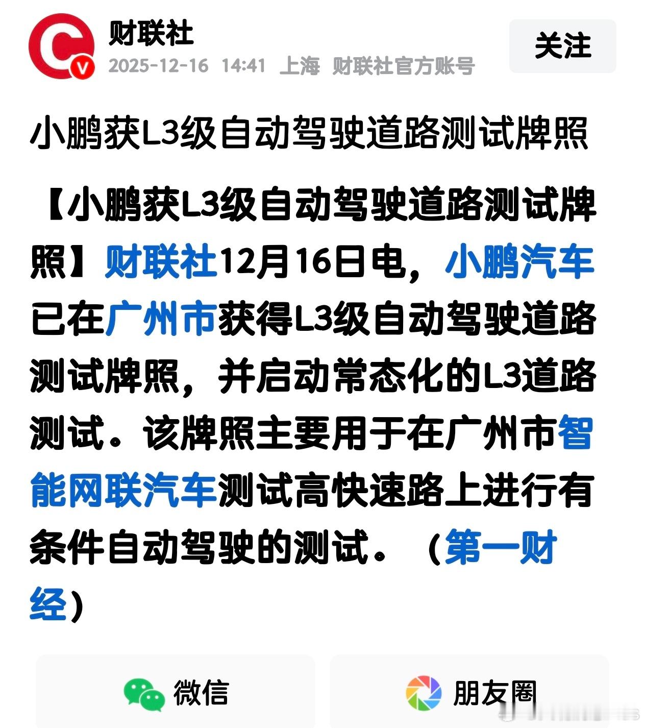 小鹏也获得了L3级自动驾驶道路测试牌照……