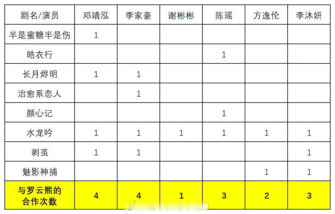罗云熙和同公司艺人合作次数统计