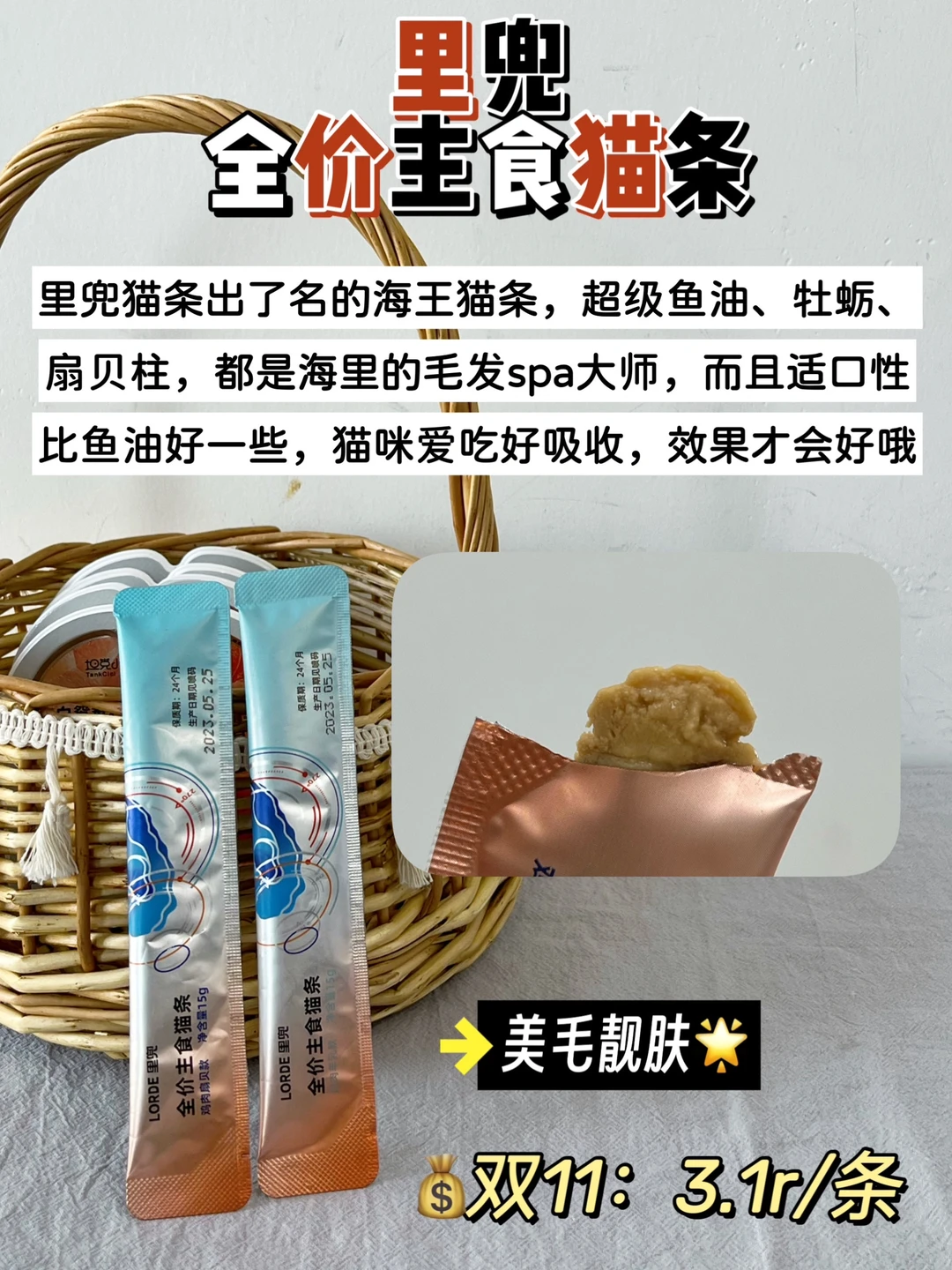 里兜猫条出了名的海王猫条,超级鱼油+牡蛎+扇贝柱,都是海里的毛发spa大师,而且适口性比鱼油好一些,猫咪爱吃好吸收,效果才会更好哟~