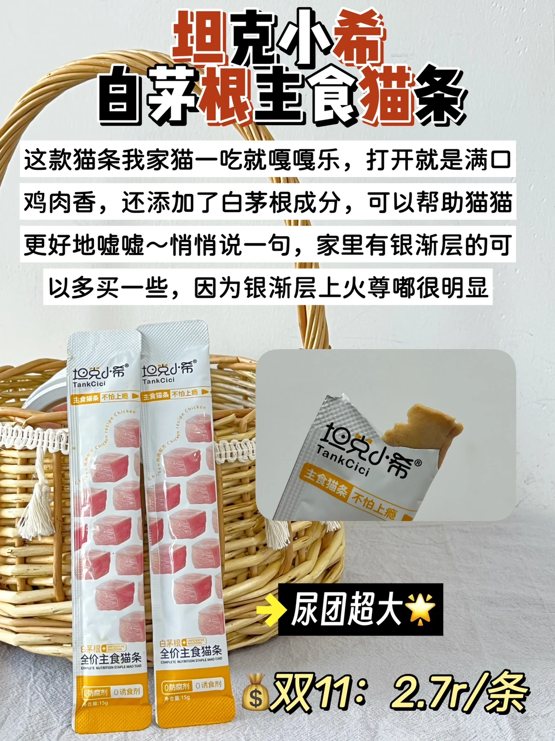 坦克小希白茅根主食猫条 尿团超大/2.7¥