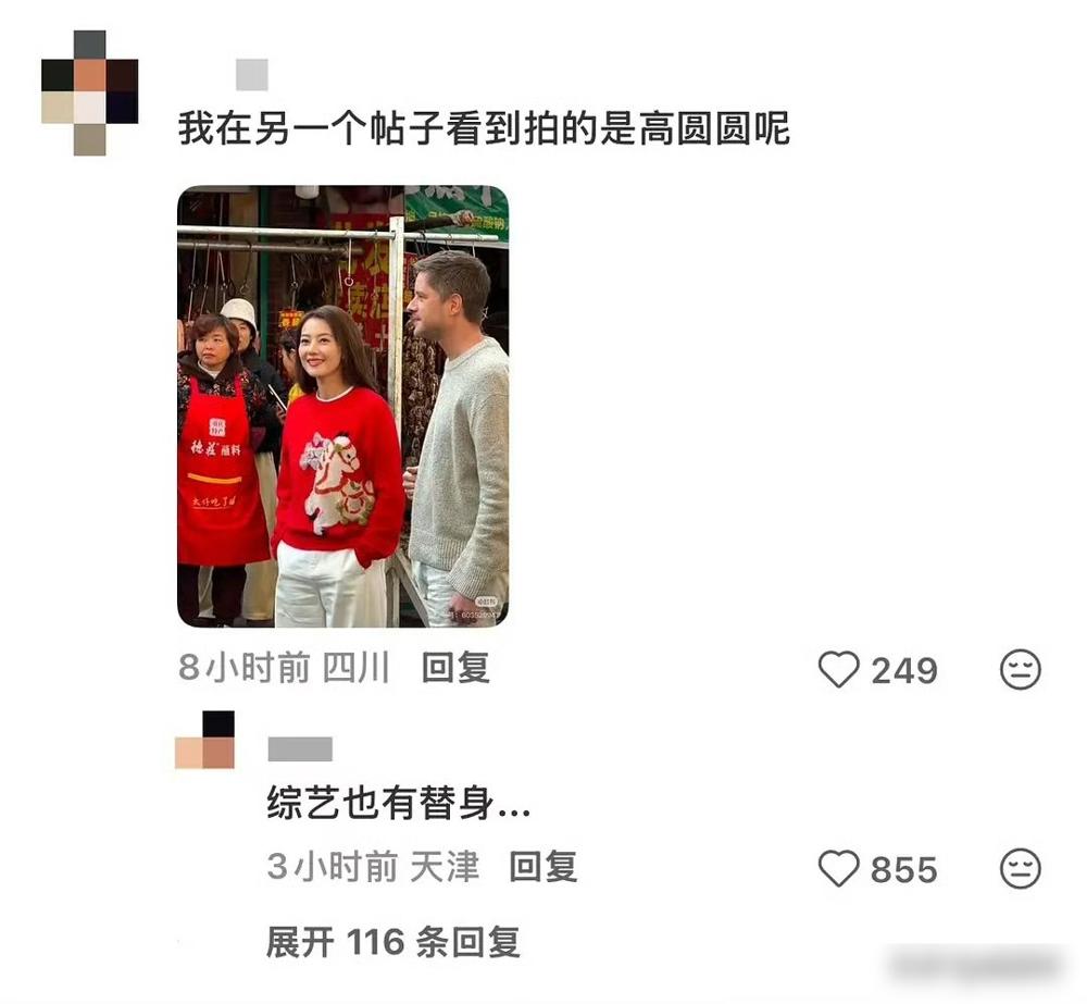 第一次听到“综艺替身”这个词,近日高圆圆录制综艺,没想到有网友拍到有一个女性穿着