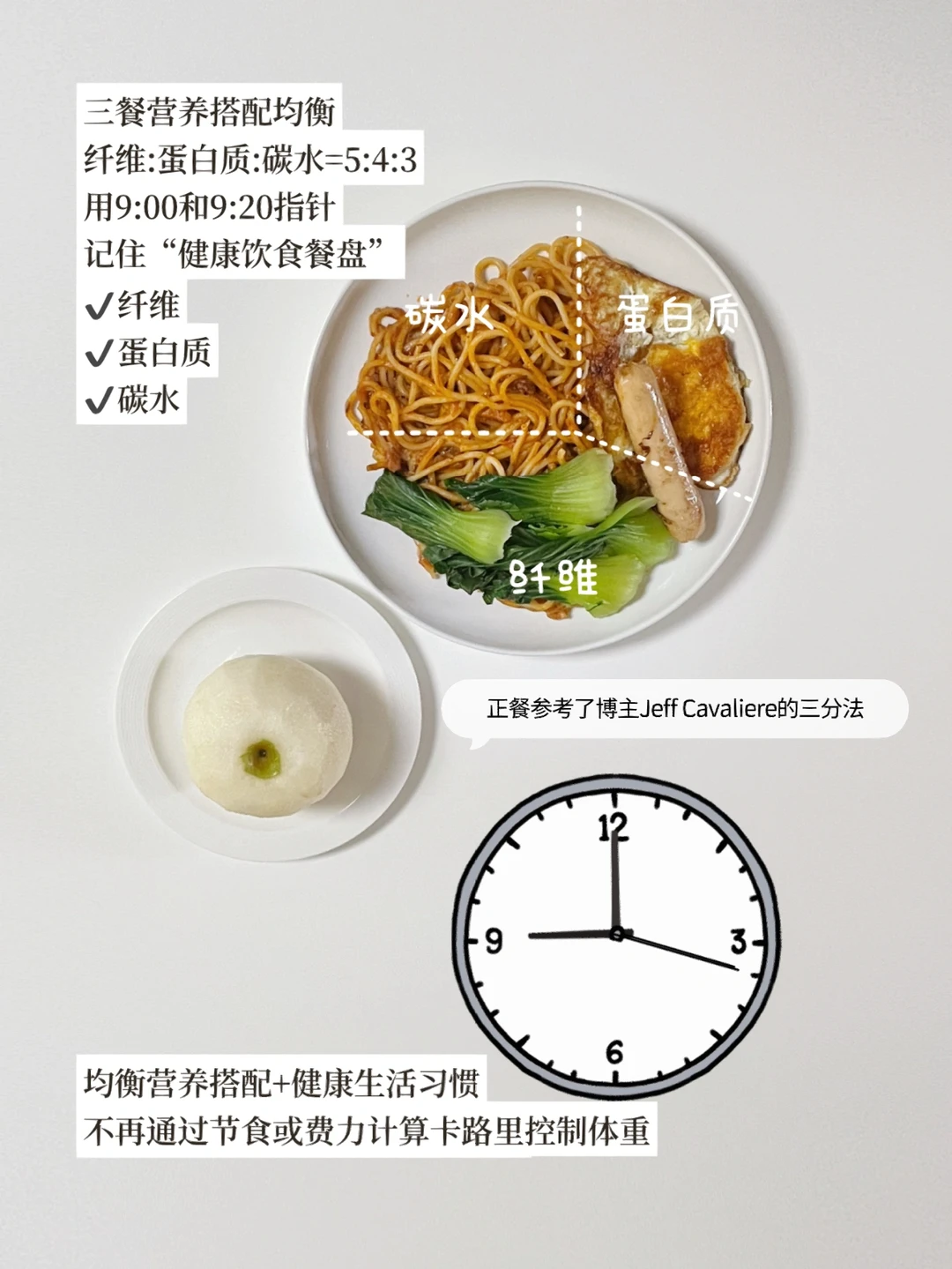 参考“健康饮食餐盘”:纤维、蛋白质、碳水5:4:3,结合好的生活习惯,今年成功减重10斤并稳定控制身体在好的状态。