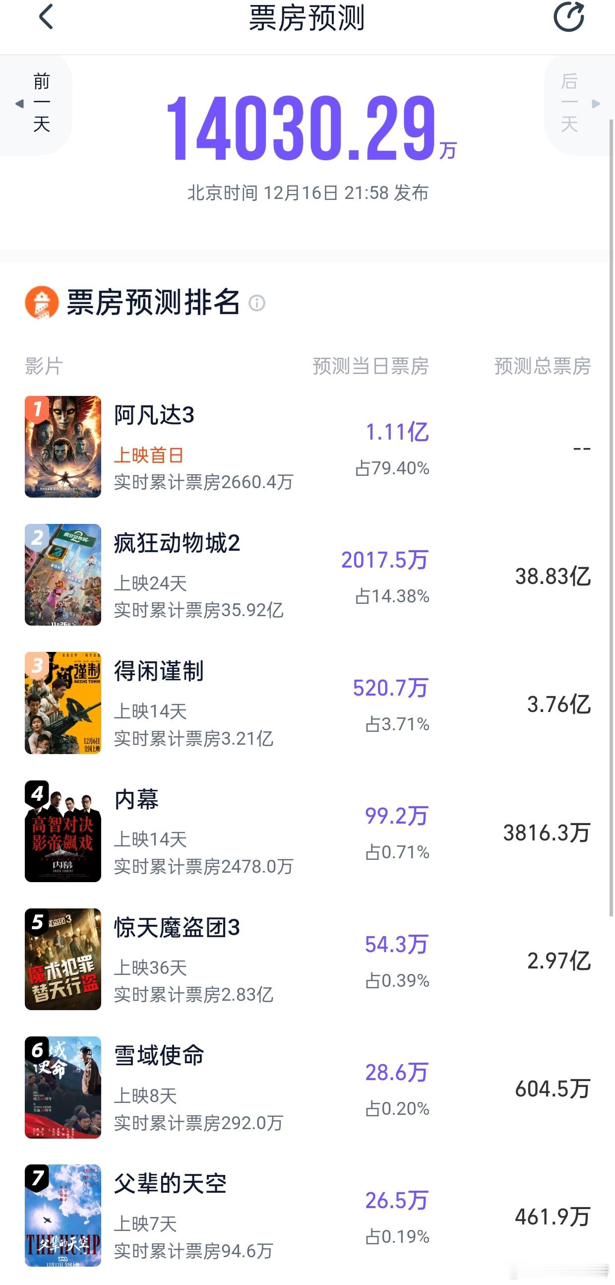 听听温特怎么说明天周六《得闲谨制》排片不错呀接近20%猫塔预测明天3000万。