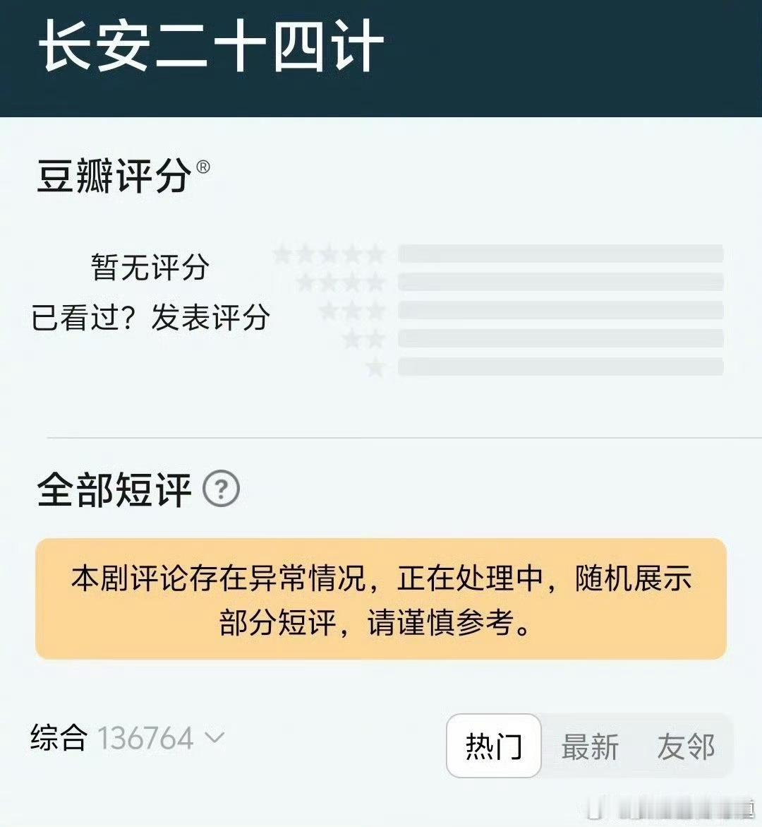 长安二十四计豆瓣评论异常评论异常就一定是被团建一星了?没准是跟某个AI五星评论的剧一样导致的异常呢?