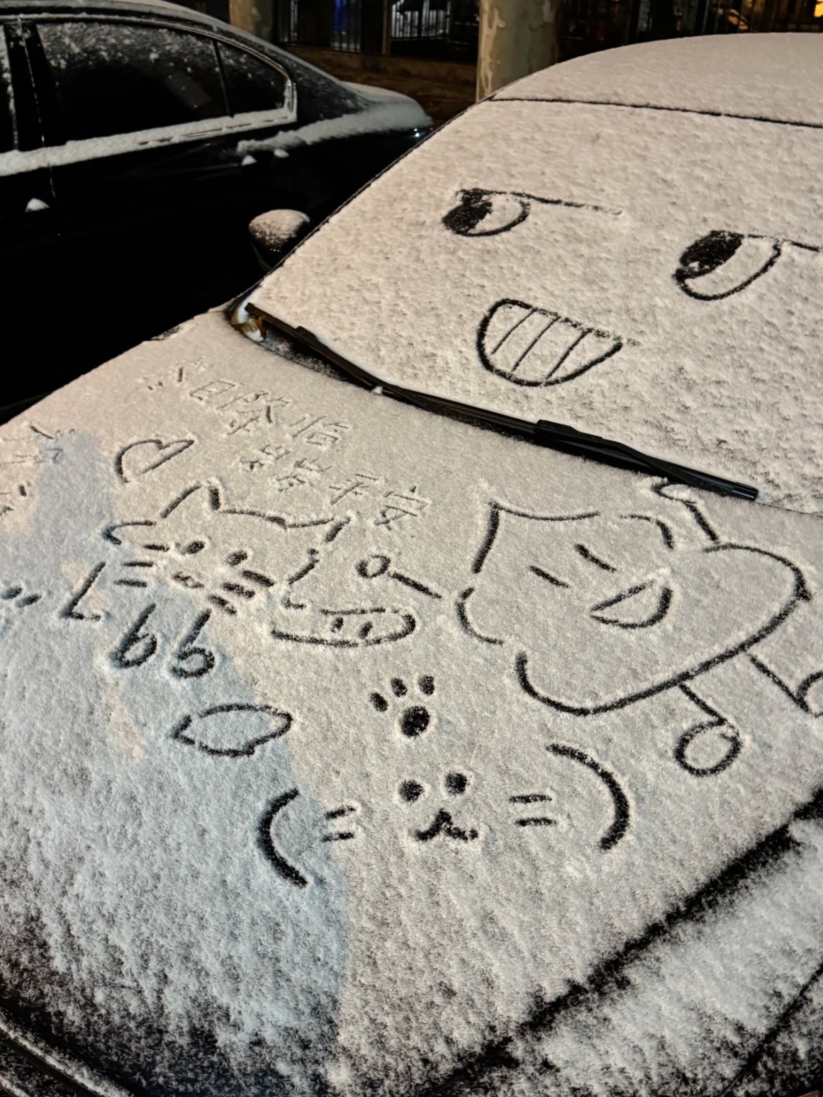 这几天下雪,大家有没有在车上搞搞创作可惜我的小车停车库了,要不我高低画点啥~