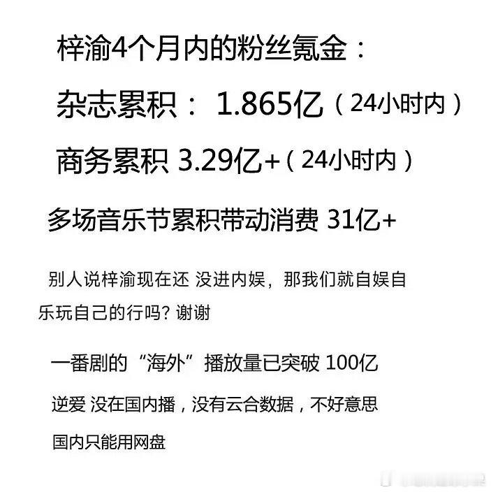 梓渝 4个月内杂志商务音乐节,粉丝共氪金 36亿+,杂志 1.86亿+ ,他今年 23岁,虽然梓渝他现在还 没进内娱,全国巡回演唱会即将开始 这什么水平梓渝 韩剧男主