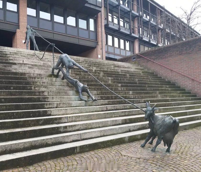 德国 Schwaebisch Hall 区政府大楼前楼梯上的青铜雕塑扶手,由艺术家Karl-Henning 设计,1981年落成。德国 艺术 雕塑