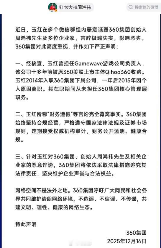 吃了一天玉红称帮周鸿祎造假账的瓜图2,还以为是被盗号了,刚刚,360创始人
