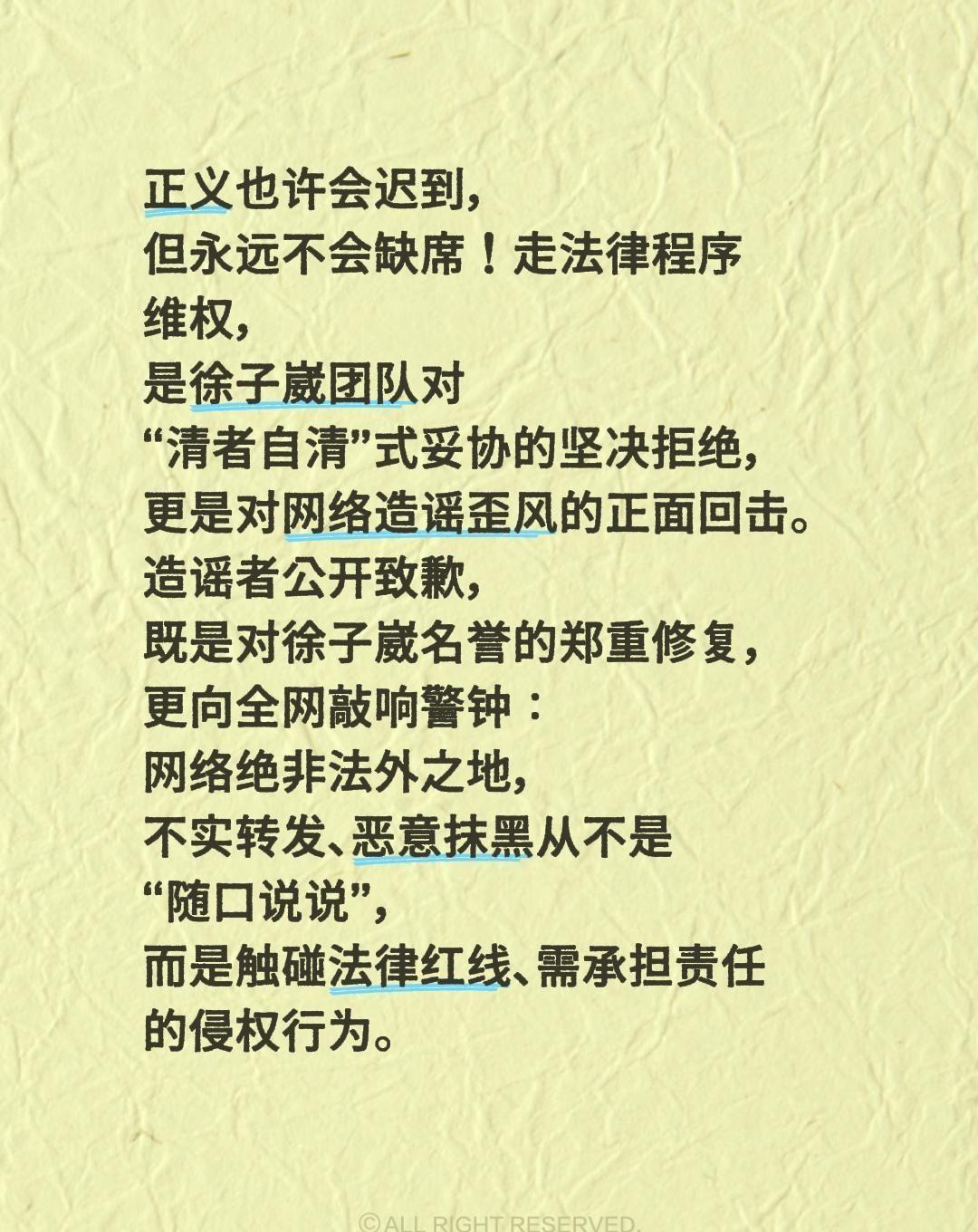 当你还在截图发律师函,他已经改变了游戏规则。 徐子崴没停留在微博喊话。 他直接把三个长期网暴者送上了北京朝阳法院的被告席。 这个案子刚被最高法列为年度十大侵权案例——这意味着,你下次取证时,判决书就是你的范本。 他做了一件事更狠:拉起12家经纪公司,凑了800万现金,成立了一个援助基金。 半年时间,这笔钱已经帮37个被网暴的普通人付清了律师费。 现在,连中央网信办新规都引用这个案例。 个人发函,平台删帖,法院判决。 这三件事以前是孤立的。 徐子崴团队把它们串成了流水线:用判决固定侵权事实,用行业同盟分摊维权成本,用公益基金降低普通人门槛。 现在,网信办把它写进了治理范本。 这意味着什么? 意味着演艺圈维权从“拼个人财力”的消耗战,转向了“靠系统作战”的阵地战。 一个明星撬动了整个行业的防御姿势。 别只当八卦看。 这是信号:网络施暴的成本正在指数级上升。 以前他们藏在ID后面,现在判决书能扒出真实姓名;以前受害者孤立无援,现在背后站着整个行业的救济金。 当一个人选择用制度回击恶意,他战胜的就不只是几个黑粉。 他重新划定了战场的边界。 记住这个公式:司法锤子+行业盾牌+公益弹药。 下一个轮到谁?