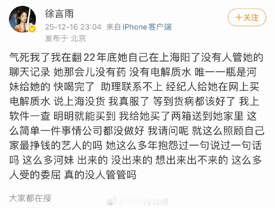 前队友徐言雨为鞠婧祎发声,阳了的时候没人管她经纪人给她买电解质水 明明有货说没货