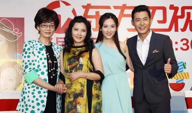 镜头中的潘虹短发利落无瑕,气质端丽华美,身材若衣服架子,一袭黑裙外搭着绿色波点服更显得秀韵多姿,犹似一首优雅的诗篇哈,分分钟秒杀何赛飞与那位长发垂肩的年轻女子呀,你看是吧?