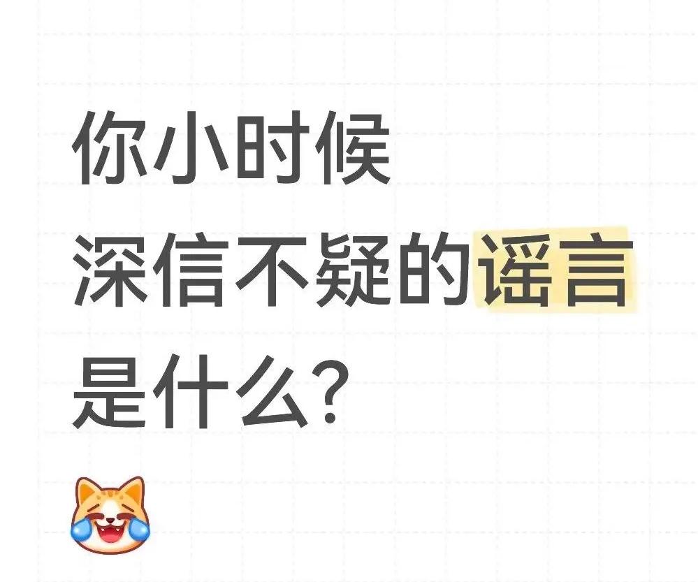 笑不活了!小时候被骗得团团转的谣言,你中了几个? 现在回头看,小时候的我纯纯大冤种啊! 被长辈的“套路”骗得深信不疑,现在想起来还挺有意思的! 夏天吃西瓜由于嘴馋,总是连着西瓜籽一起吃,我妈说会在肚子里发芽结果,吓得我咽下去后三天不敢喝水,生怕给西瓜“浇水”,以后吃西瓜再也不吃籽了。 有次不小心吞了口香糖,直接在家号啕大哭,以为肠子要被粘住嗝屁,还对着月亮许愿求放过。 屋里打伞长不高,导致我现在下小雨天在宁愿淋雨也不敢开伞,现在160的身高,怪谁呢? 还有就是“压岁钱我帮你存着”,这句话简直是童年最大骗局!我一直以为自己是隐藏富婆,结果钱早就下落不明。 还有“说法”的谣言,必须吃黄桃罐头,这样就能“逃”过一劫…这种是我最喜欢的谣言,毕竟那时候条件一般,能吃整瓶的罐头太奢侈了! 现在才发现,这些谣言全是长辈的“治娃神器”,主打一个简单粗暴又有效! 你小时候最信哪个离谱谣言?