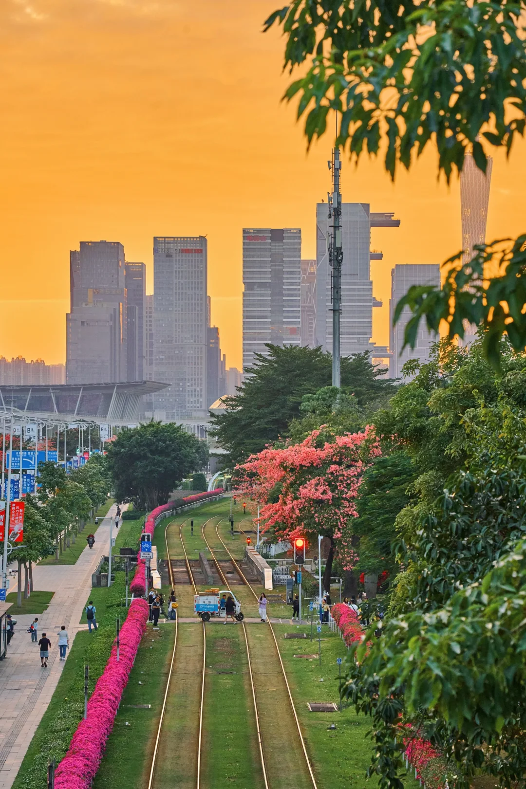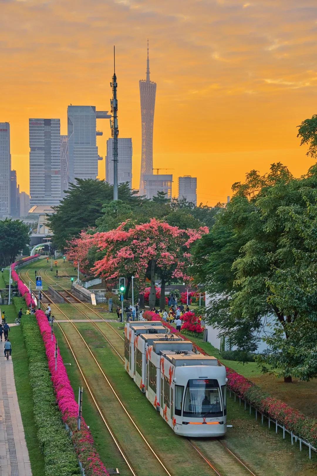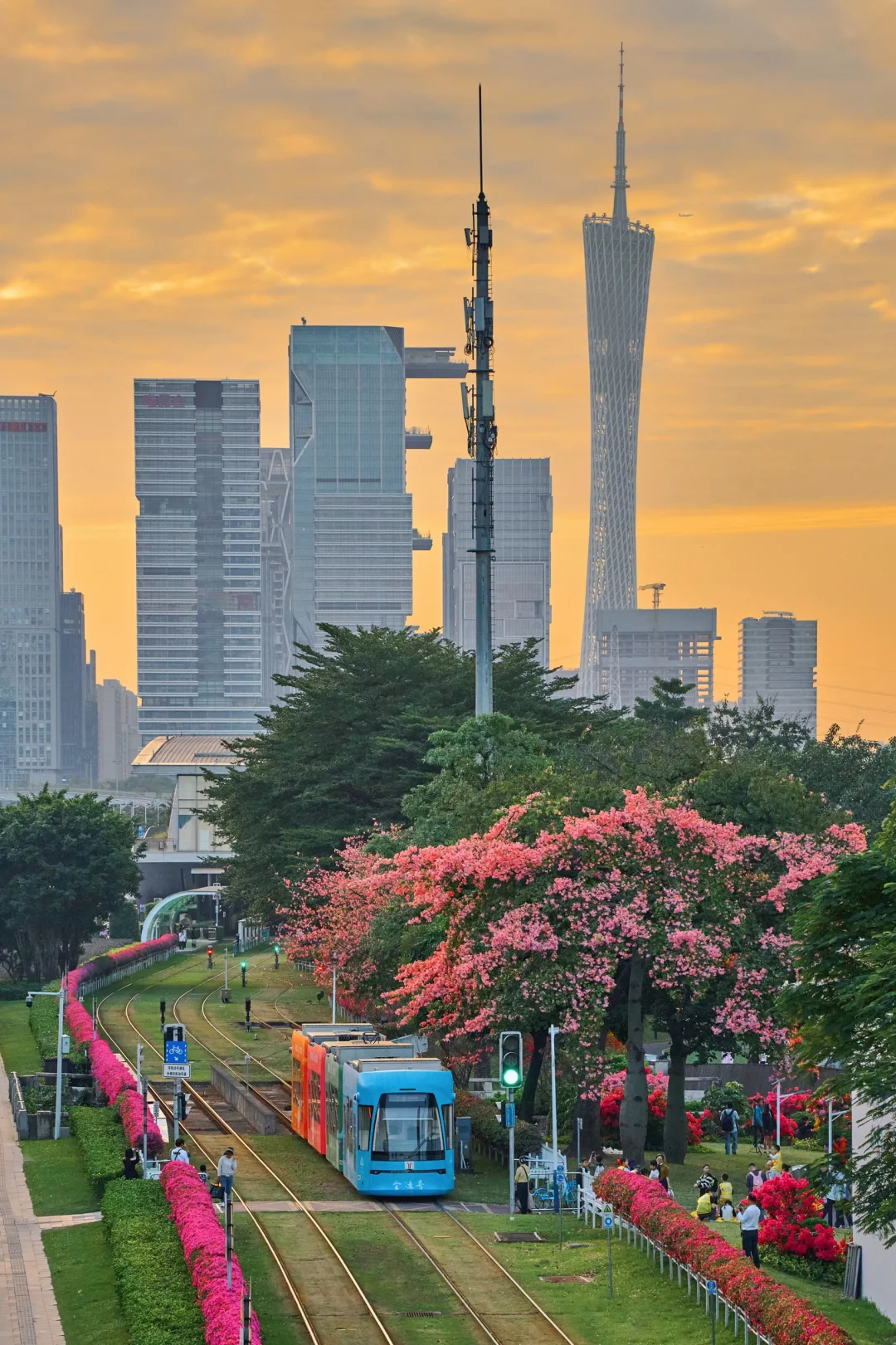 ✅有轨电车✅异木棉✅江景夕阳✅广州塔同框