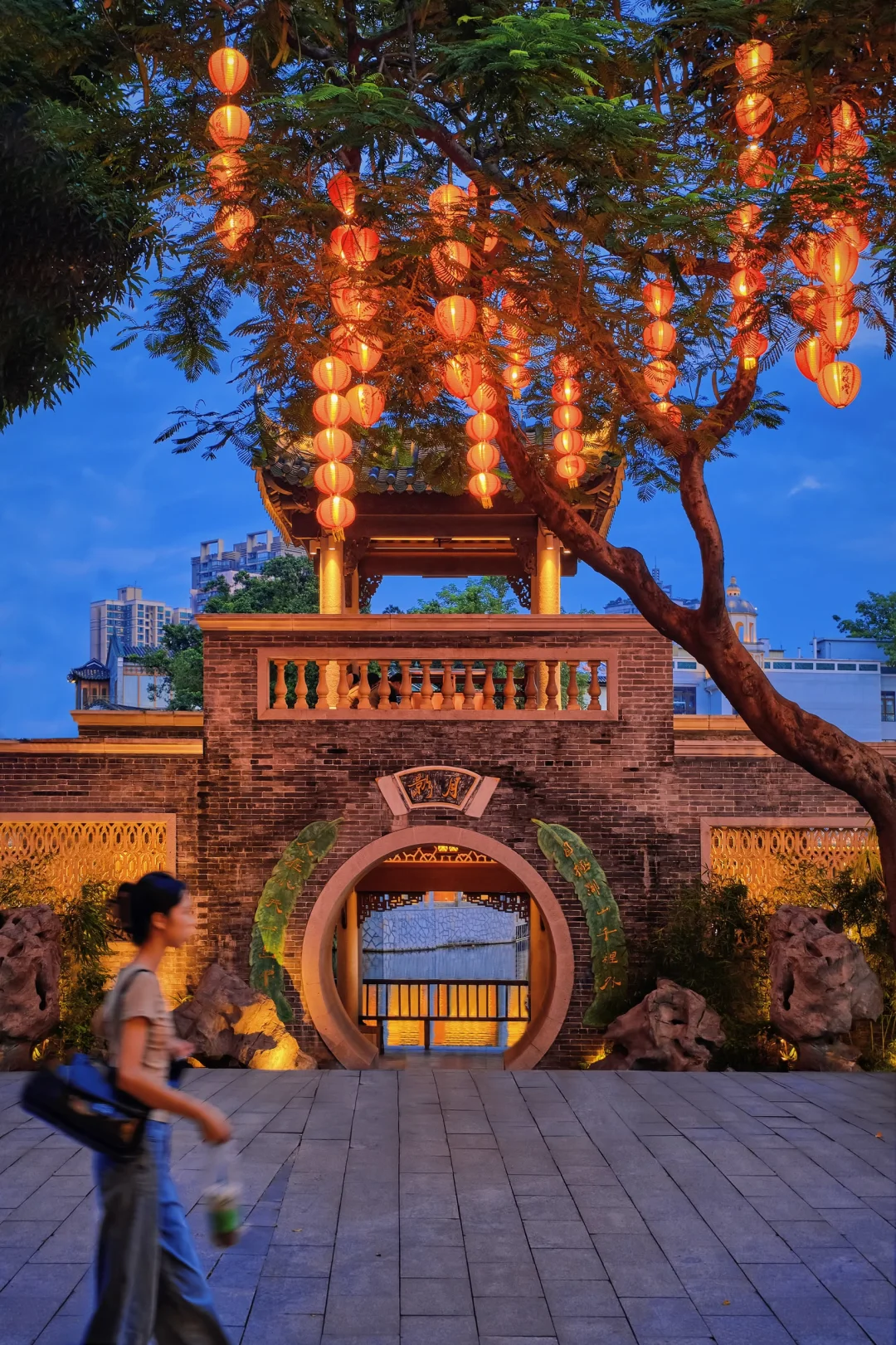 恩宁路骑楼连绵,李小龙祖居的满洲窗、粤剧博物馆的水上戏台,随手一拍都是岭南美学。永庆坊每年中秋都挂不同主题的灯笼,重点的是“月亮桥”——夜幕来临,桥上开始亮灯,桥洞倒影成弯月,此时中秋浪漫氛围拉满