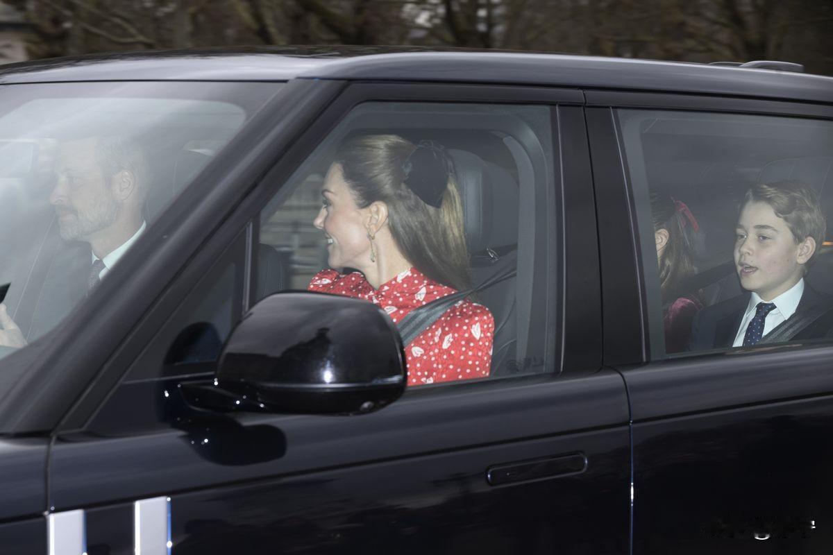 来了,来了,威廉王子和凯特王妃一家五口终于再一次整整齐齐出席查尔斯国王举办的圣诞午餐宴。 去年,威尔士三宝因为圣诞假期,威廉王子和凯特王妃带着乔治王子、夏洛特公主、路易小王子提前返回了乡下诺福克郡的别墅安默尔大厅,从而缺席了查尔斯作为国王主持的第二次王室家庭午餐宴。 12月16日,威廉王储被拍到亲自开车载着凯特王妃和三个孩子一同到温莎城堡参加午餐宴。 路易小王子望着车外,一脸呆萌。 夏洛特公主和妈妈一样穿着红裙,甜美可爱。 凯特王妃穿着红色印花裙,虽然依旧消瘦,但是即将迎来假期,他显得心情很是不错。