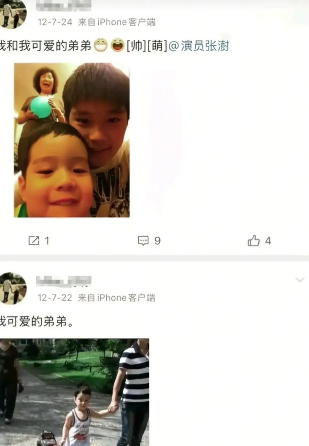 许何牵着同父异母的弟弟走在林荫道上,配文说小树苗终于长到肩膀了。 照片里哥哥低头