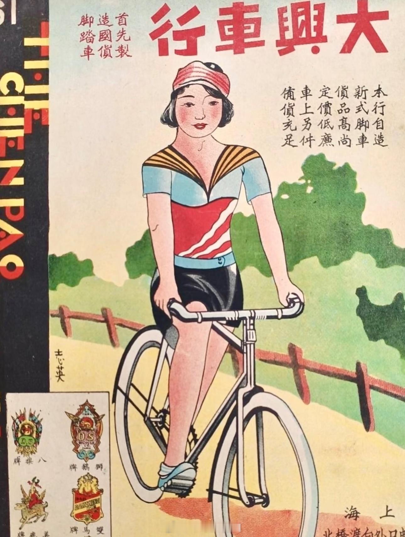 1930年代上海大兴自行车公司的杂志封面广告,这是中国第一家自行车制造公司。慢着