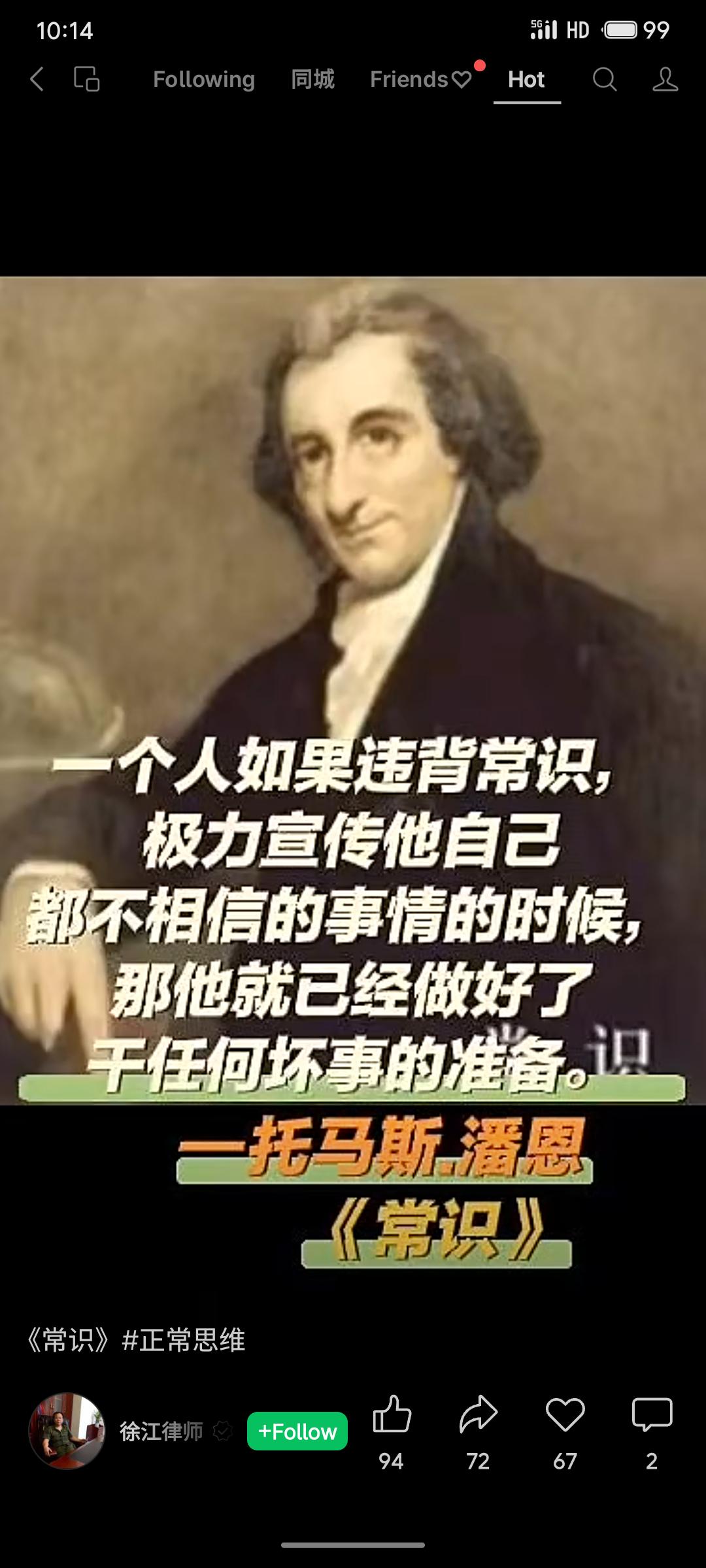 托马斯·潘恩的这句警示指出,当一个人公然违背常识,极力宣扬自己内心都不认同的事时,其道德底线已彻底瓦解。这意味着他已为任何恶行做好了准备,因为真实与良知已被抛弃。这提醒我们,对违背基本认知的宣传应保持警惕。