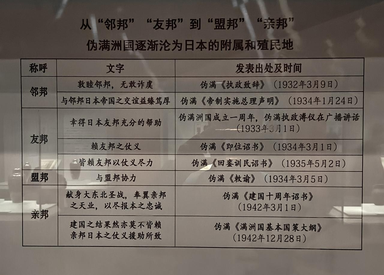 从伪满洲国对日本的称呼态度可以窥见一丝两者之间的附属关系之程度。溥仪在1932年3月就任伪满“执政”时发表的《执政致辞》中表示,“敦睦邻邦,无敢诈虞”,还只是将日本称为“邻邦”。1933年3月1日,伪满洲国成立一周年,溥仪在广播讲话中称,“幸得日本友邦充分的帮助”;1934年3月1日的《即位诏书》和1935年5月2日的《回銮训民诏书》中,也是把日本称为“友邦”。1934年3月5日发布的《敕谕》中指出,“与盟邦协力”,又将日本称之为“盟邦”。1942年3月1日,伪满又发布《建国十周年诏书》,称“献身大东亚圣战,奉翼亲邦之天业,以尽报本之忠诚”,同年12月28日的《满洲国基本国策大纲》中也是此种称呼,又将日本上升为“亲邦”。 从“邻邦”、“友邦”到“盟邦”、“亲邦”,谄媚程度不断加深,态度越发亲近,日本对伪满洲国的控制和两者宗主国与殖民地之间的关系也不断加深。而溥仪本人态度更是暧昧谄媚,对于日本殖民者的一些工作也是积极配合,他居然还接见慰问过“特攻队员”。1945年5月3日上午10时,溥仪在同德殿门前接见日本特攻队队员,为即将对美军海军舰艇、登陆部队进行自杀式攻击的特攻队员加油鼓劲。这个时间点上,小日本已经不行了,快要战败了,溥仪还如此积极的出力,看来他是真不希望日本战败啊!