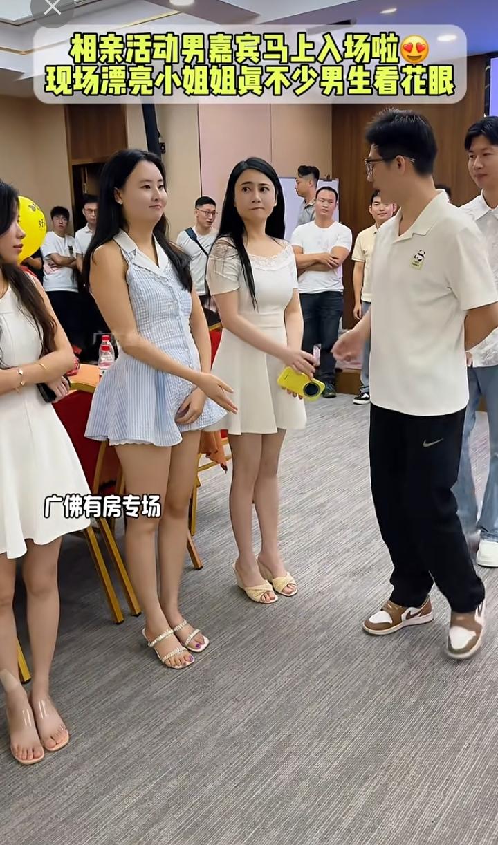 广东一相亲节目现场很多美女参加!参加的男士也不少!女孩子打扮的都很漂亮!有一个问题去相亲的女孩子穿超短裙不知道咋想的。