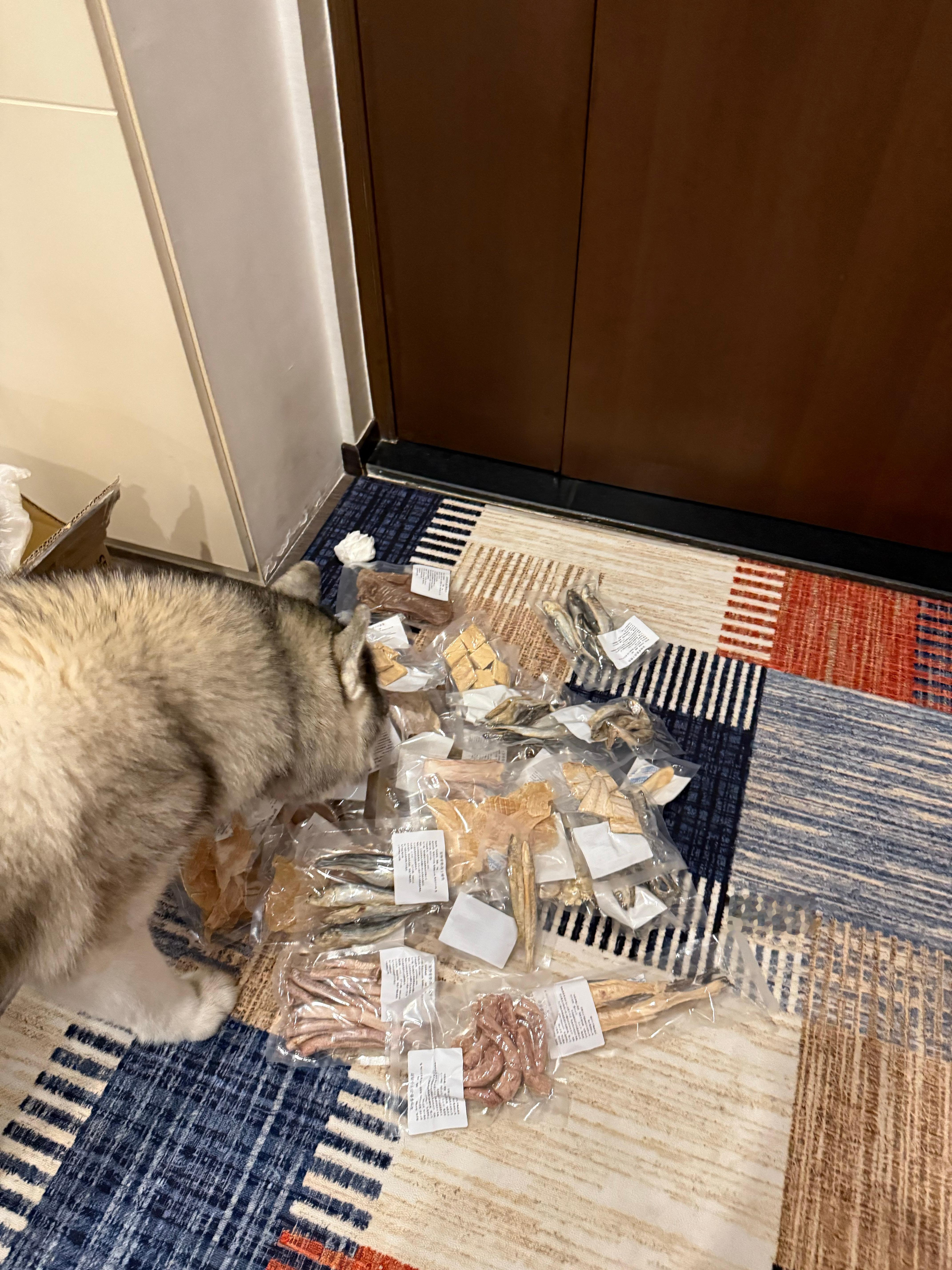 #哈士奇[超话]# 胖子狗最近的加餐[鼓掌][鼓掌][鼓掌]今天我们吃沙丁鱼意面