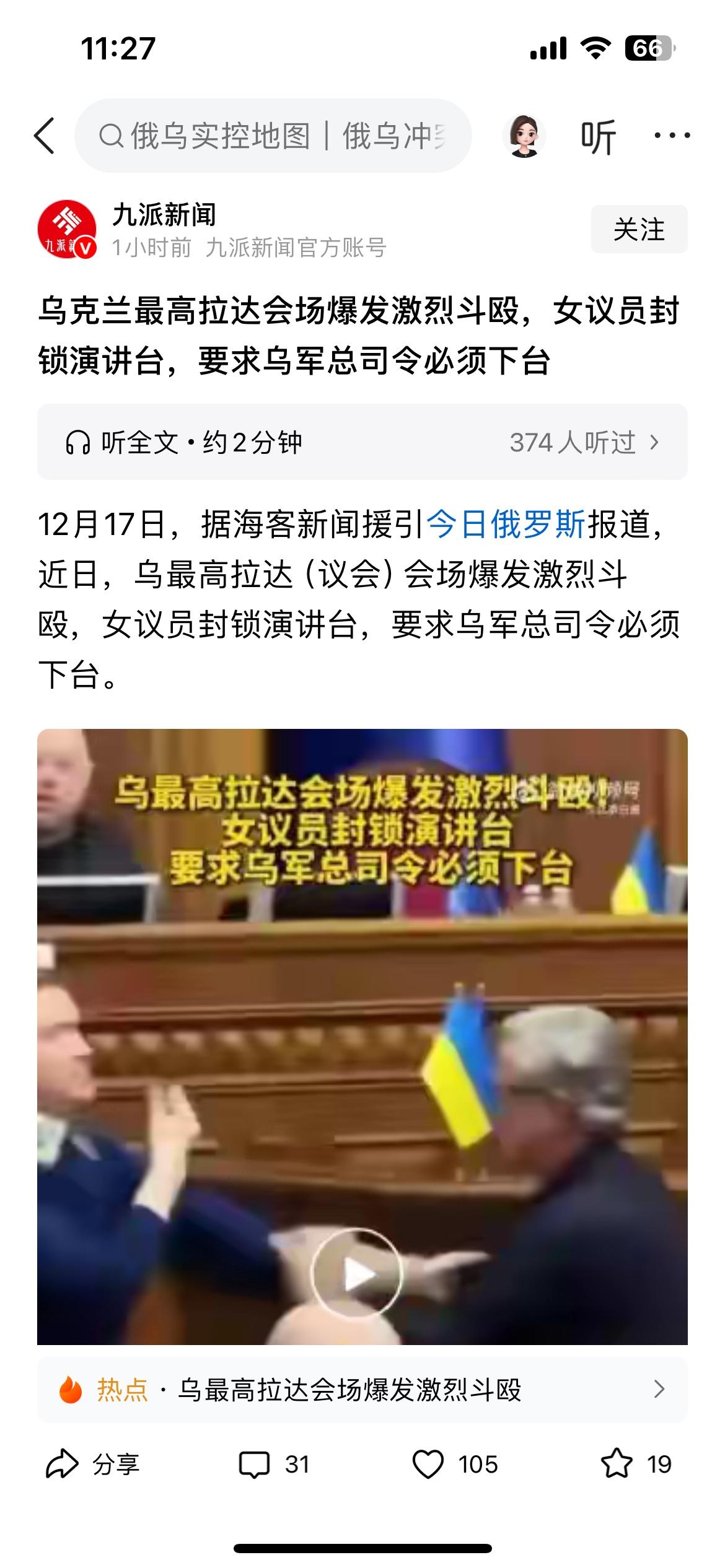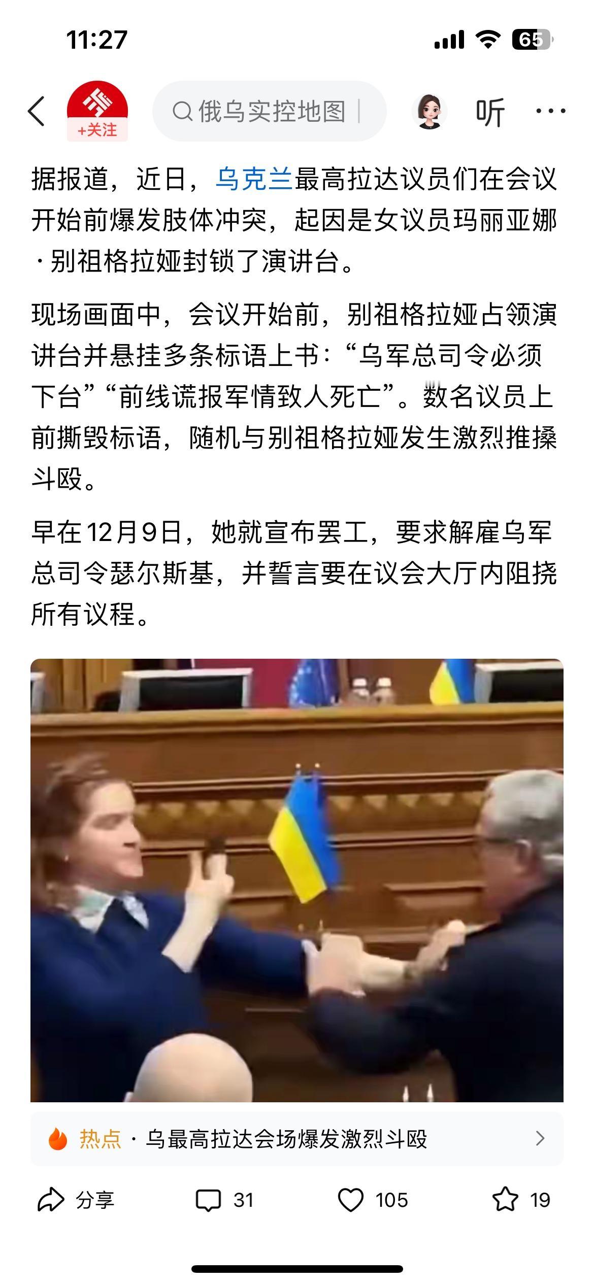 据今日俄罗斯媒体报道,乌克兰最高拉达(议会)爆发激烈斗殴,女议员封锁演讲台,泼辣无比! 当仔细看了斗殴的视频,看到女议员与男议员的冲突,实在称不上激烈斗殴,当看到原来是今日俄罗斯报道的此事,也就明白了,激烈斗殴确实是“激烈”,泼辣确实“泼辣”!