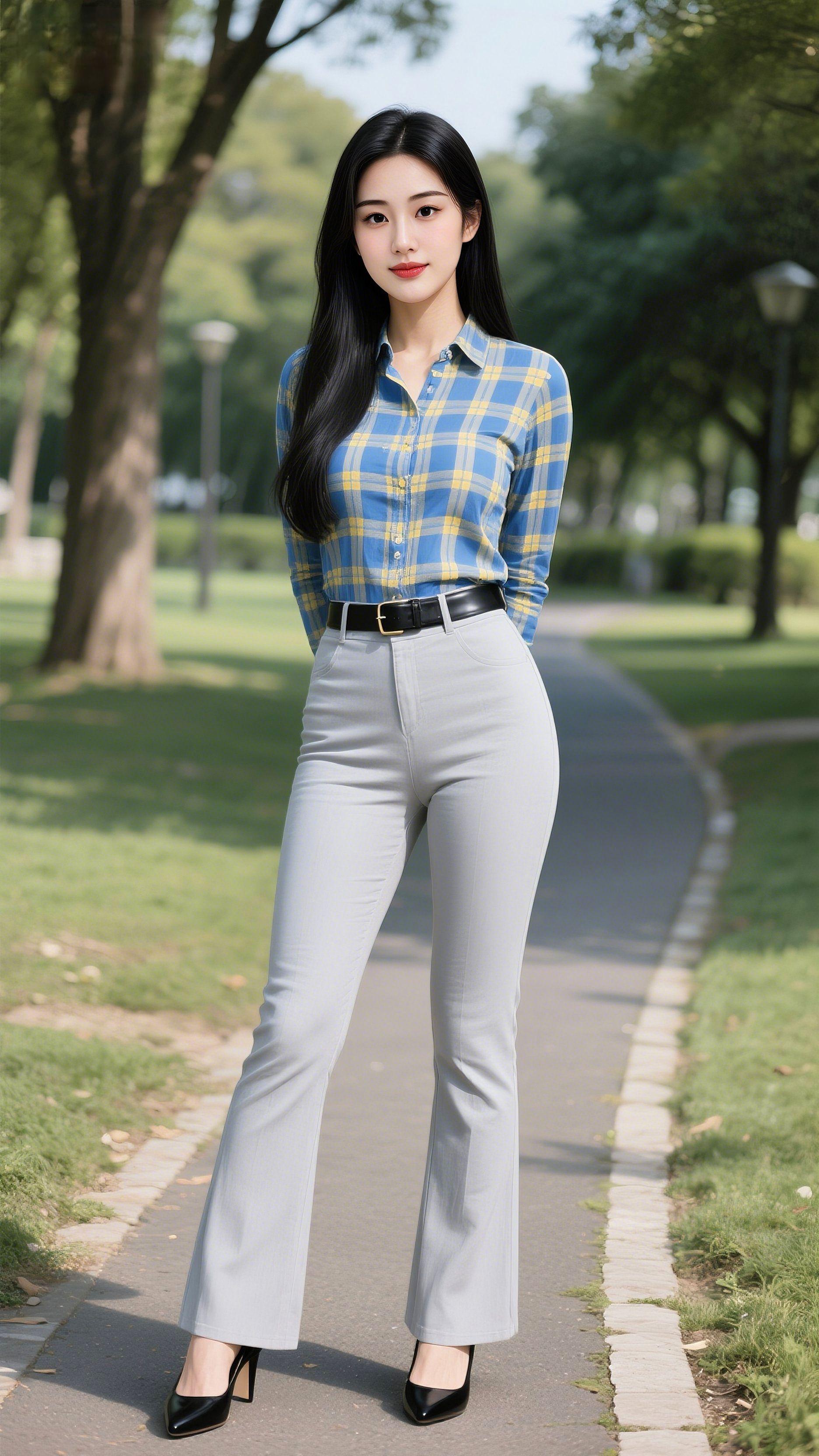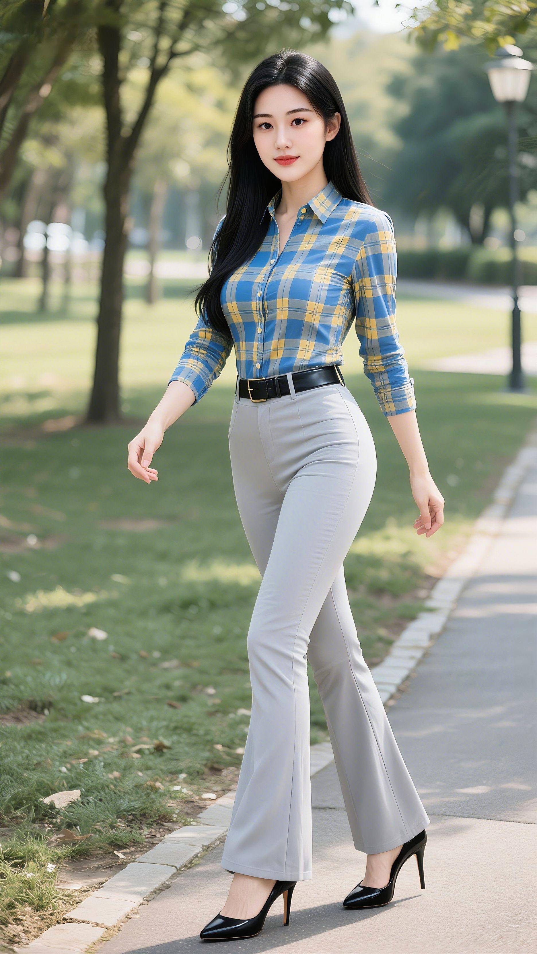 格子衫配微喇裤,通勤穿搭的松弛感拿捏了